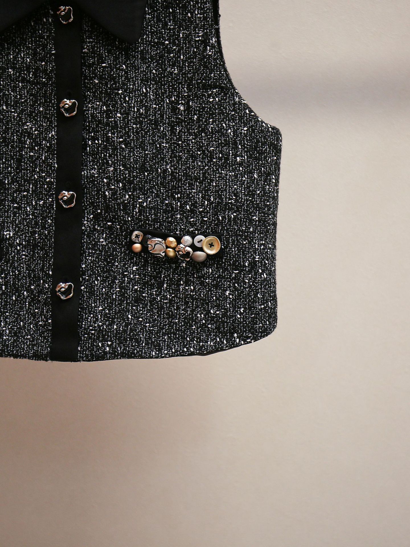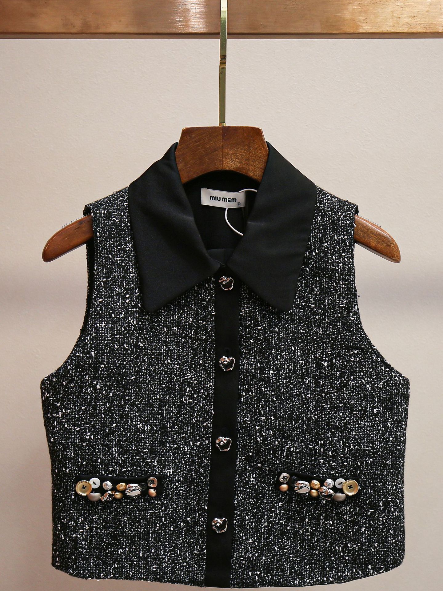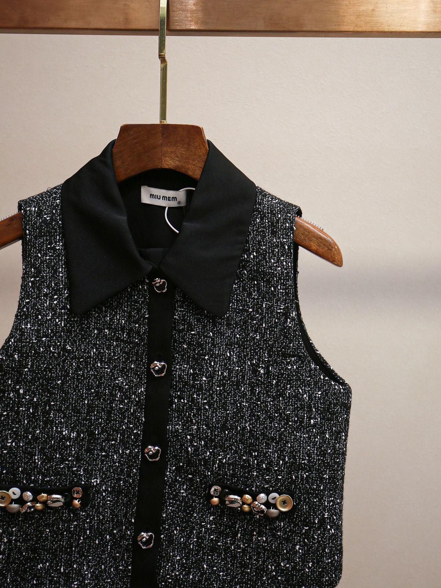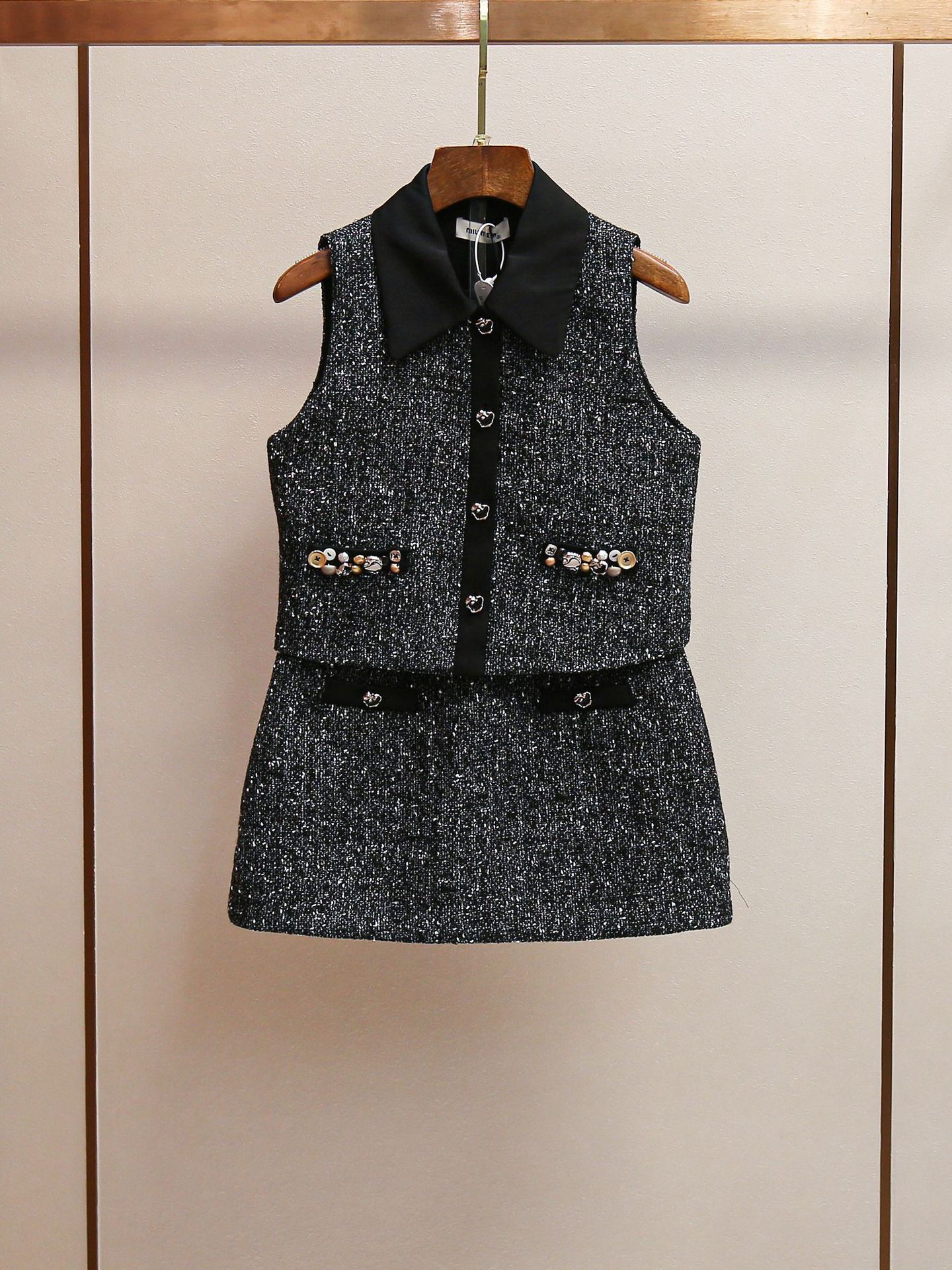 심천 난유 고급 여성 프렌치 복고풍 스타일 정장 라펠 비즈 조끼 + A 라인 스커트