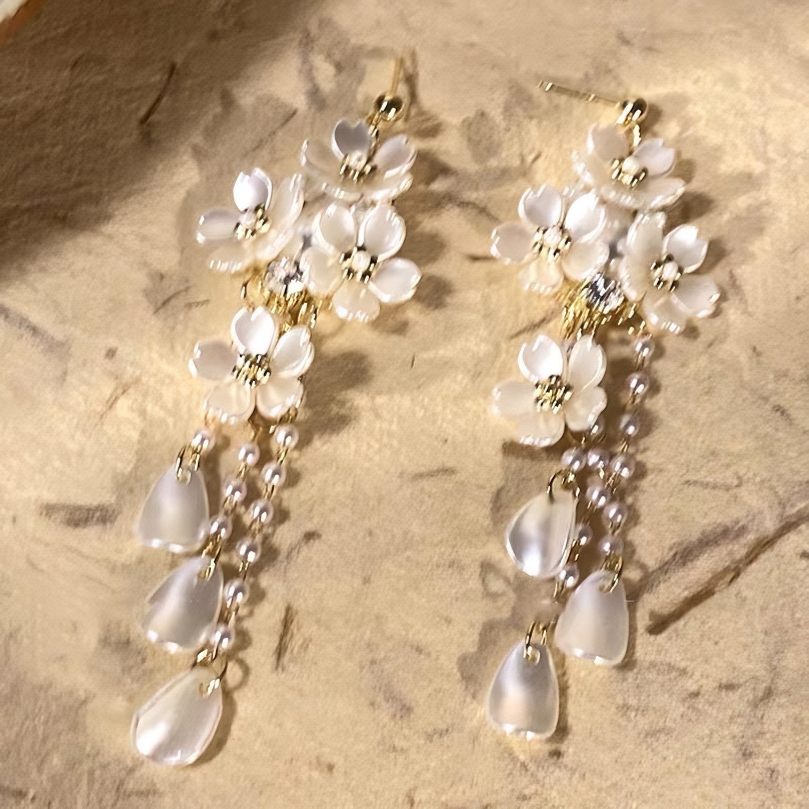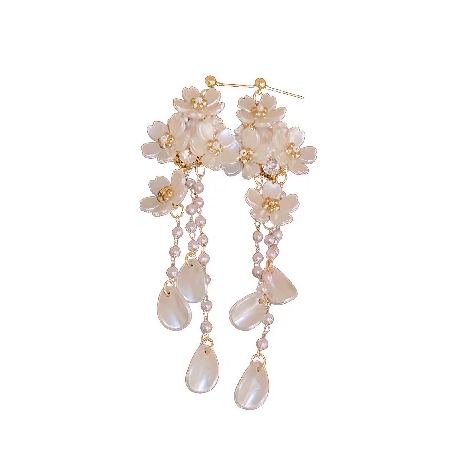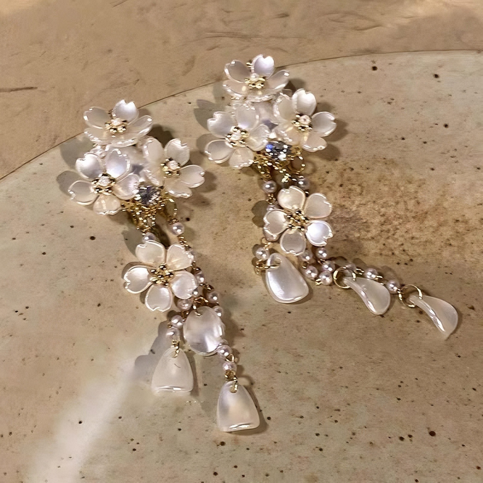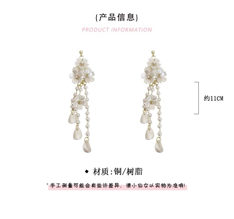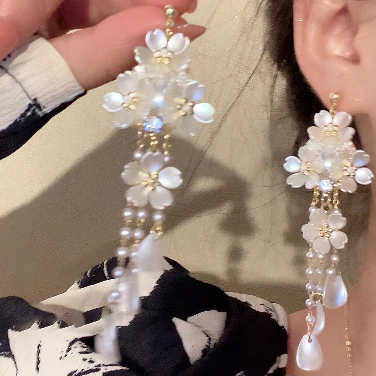 슈퍼 페어리 스위트 화이트 펄 플라워 테셀 귀걸이 여성 프렌치 레트로 과장된 귀걸이 봄과 여름 분위기 귀걸이