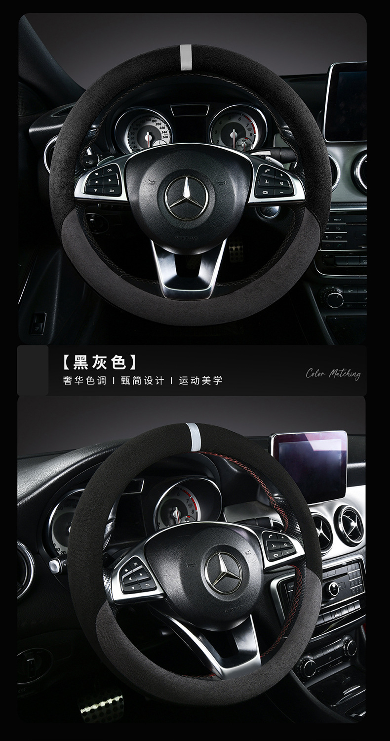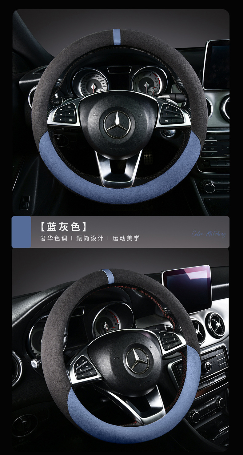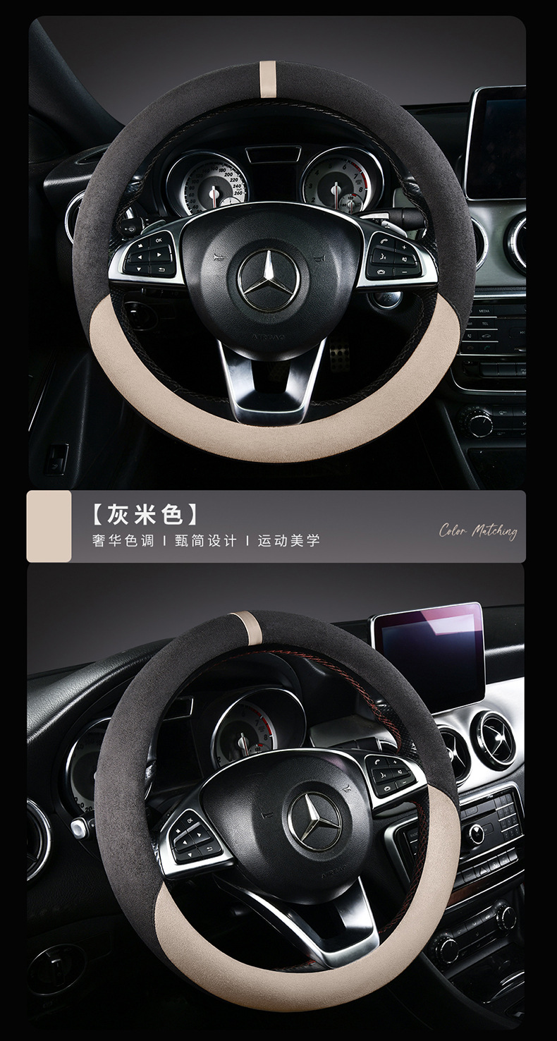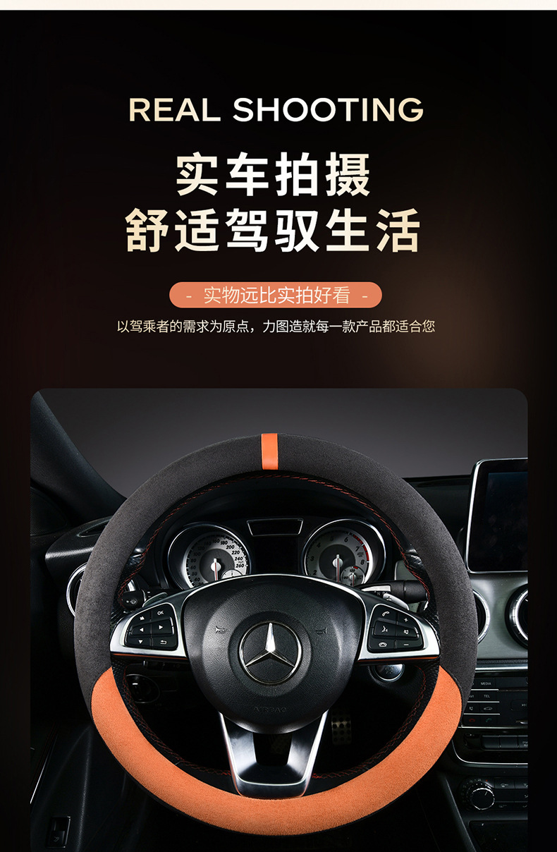 램스 스웨이드 스티어링 휠 커버 사계절 유니버설 미끄럼 방지 땀 흡수 방진 내마모성 통기성 자동차 핸들 마모 방지