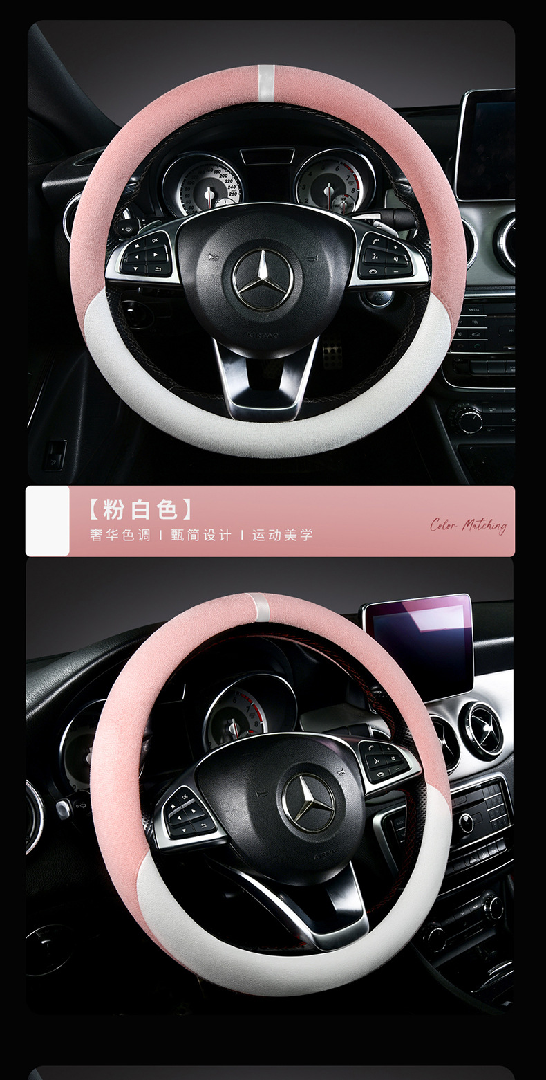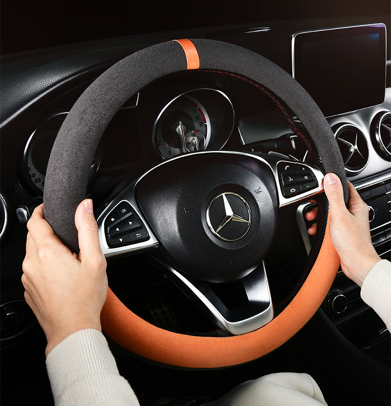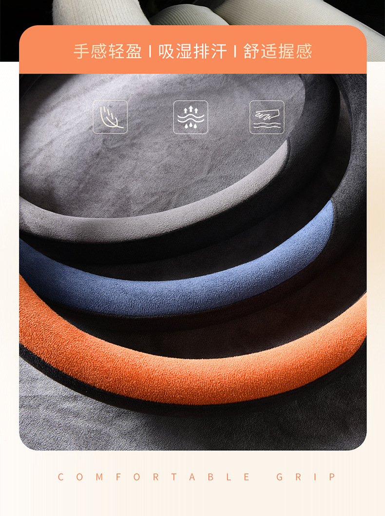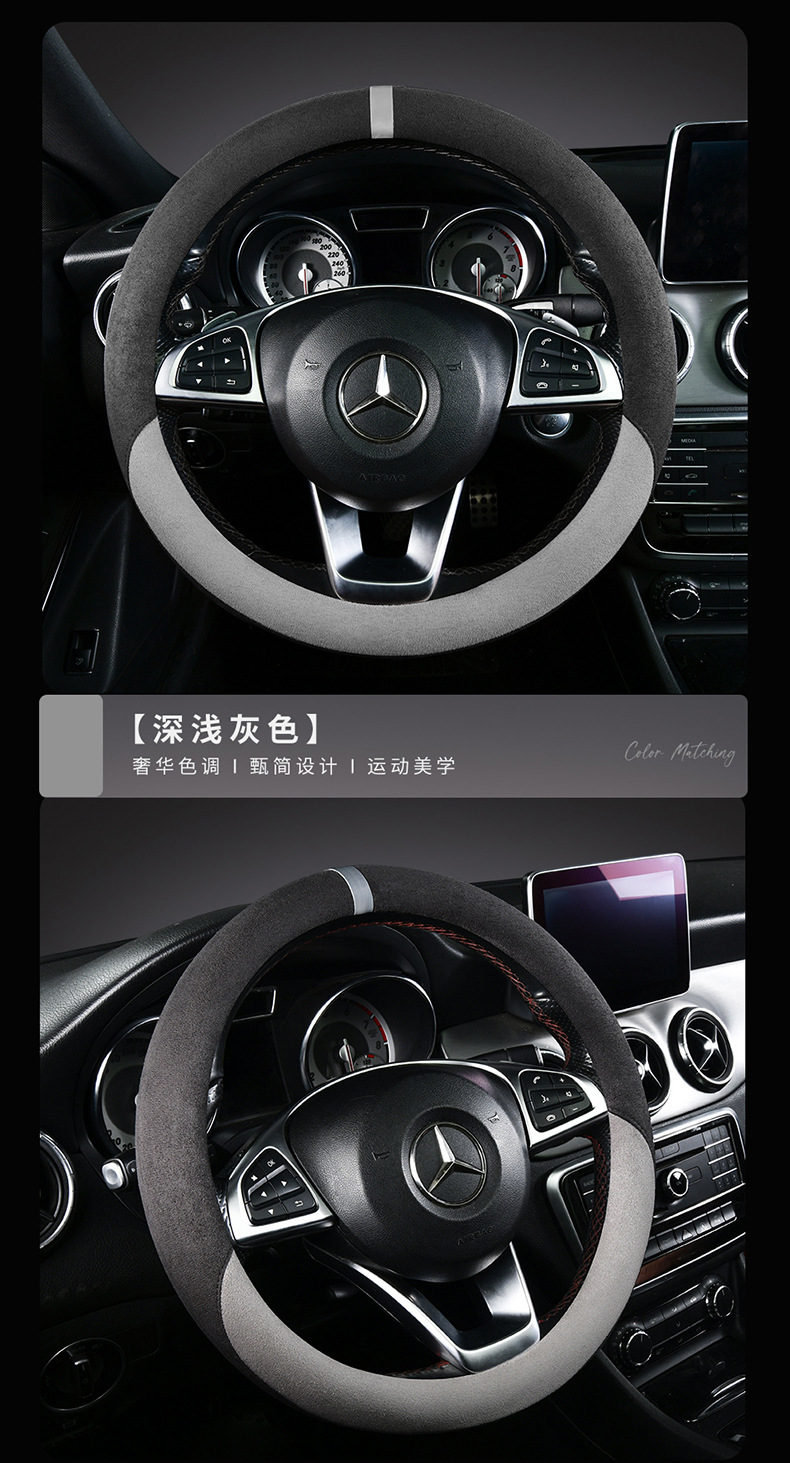 램스 스웨이드 스티어링 휠 커버 사계절 유니버설 미끄럼 방지 땀 흡수 방진 내마모성 통기성 자동차 핸들 마모 방지