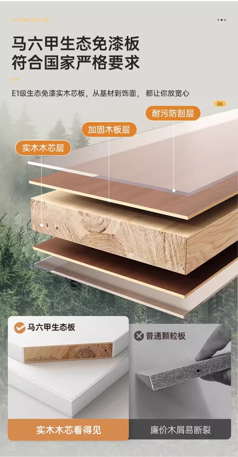 • 3개의 문과 3개의 칸막이 - 목재 색상 - 고밀도 보드