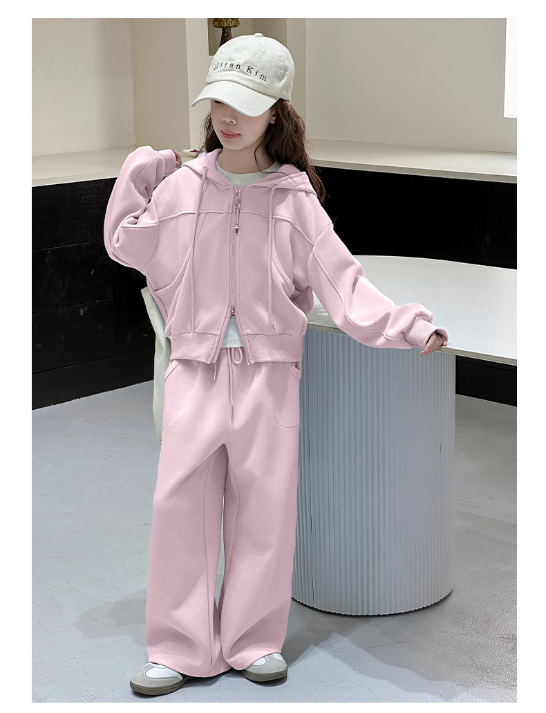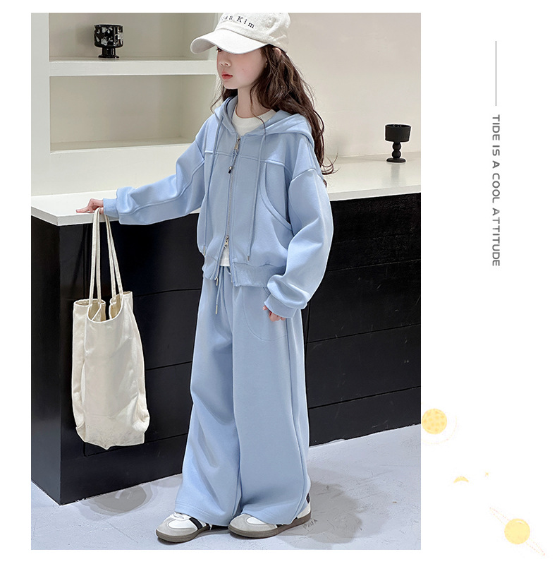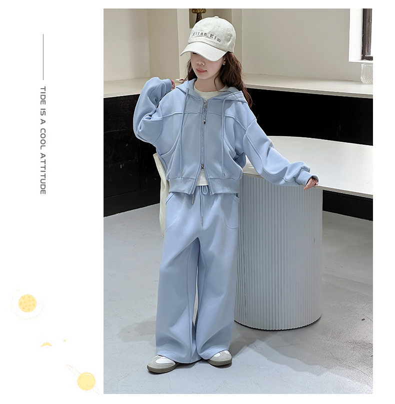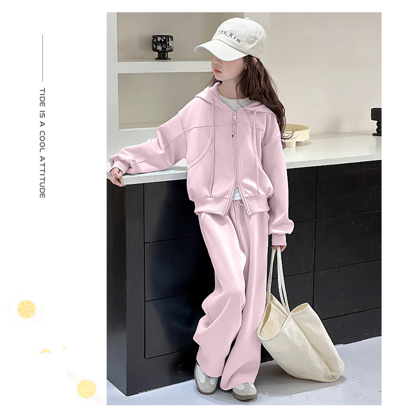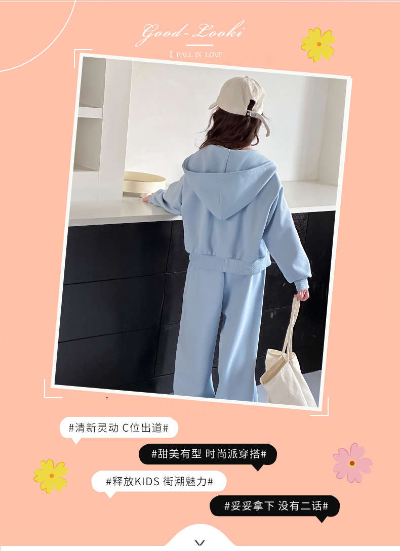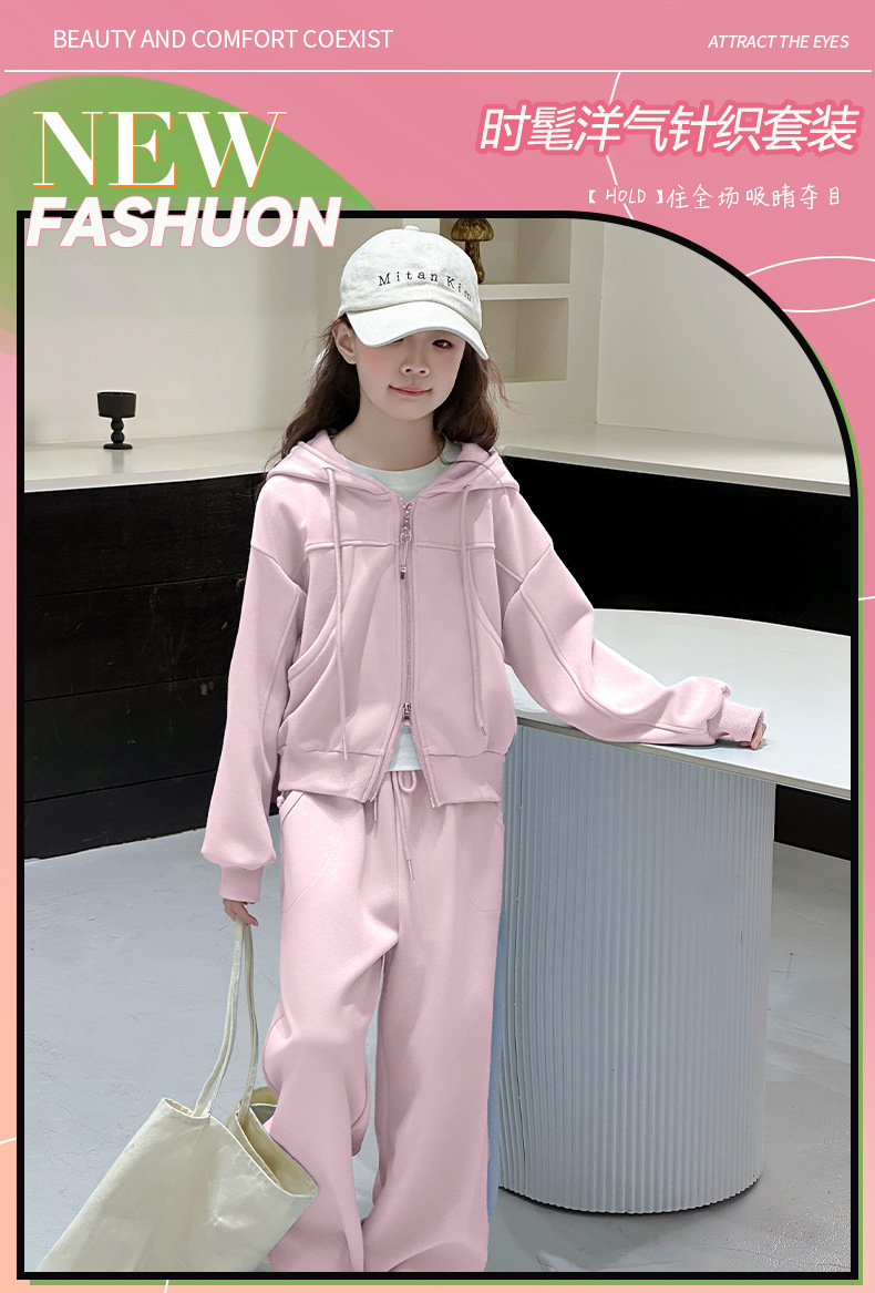 소녀 스포츠 세트 봄과 가을 2025 새로운 어린이 니트 후드 스웨터 바지 조커 투피스 한국 스타일스토어 가기