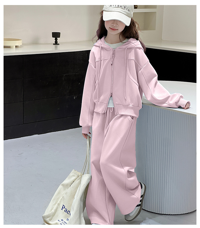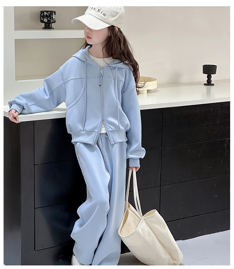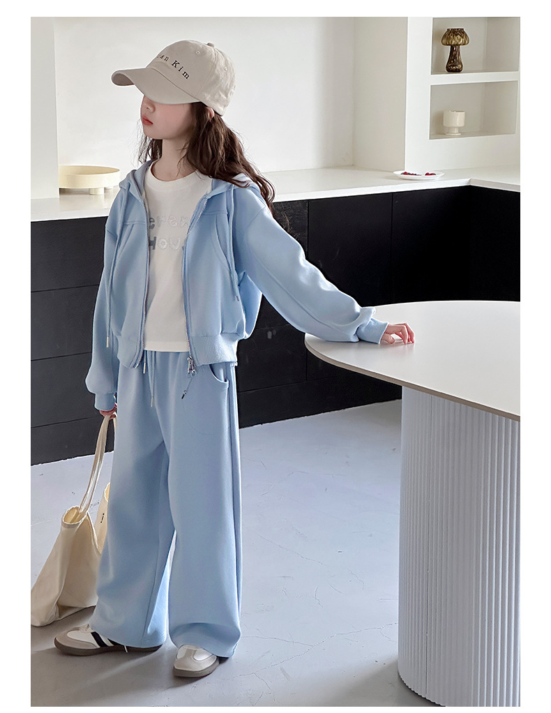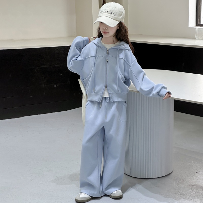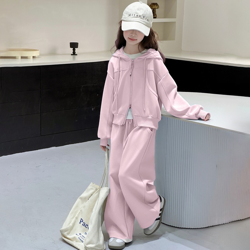 소녀 스포츠 세트 봄과 가을 2025 새로운 어린이 니트 후드 스웨터 바지 조커 투피스 한국 스타일스토어 가기