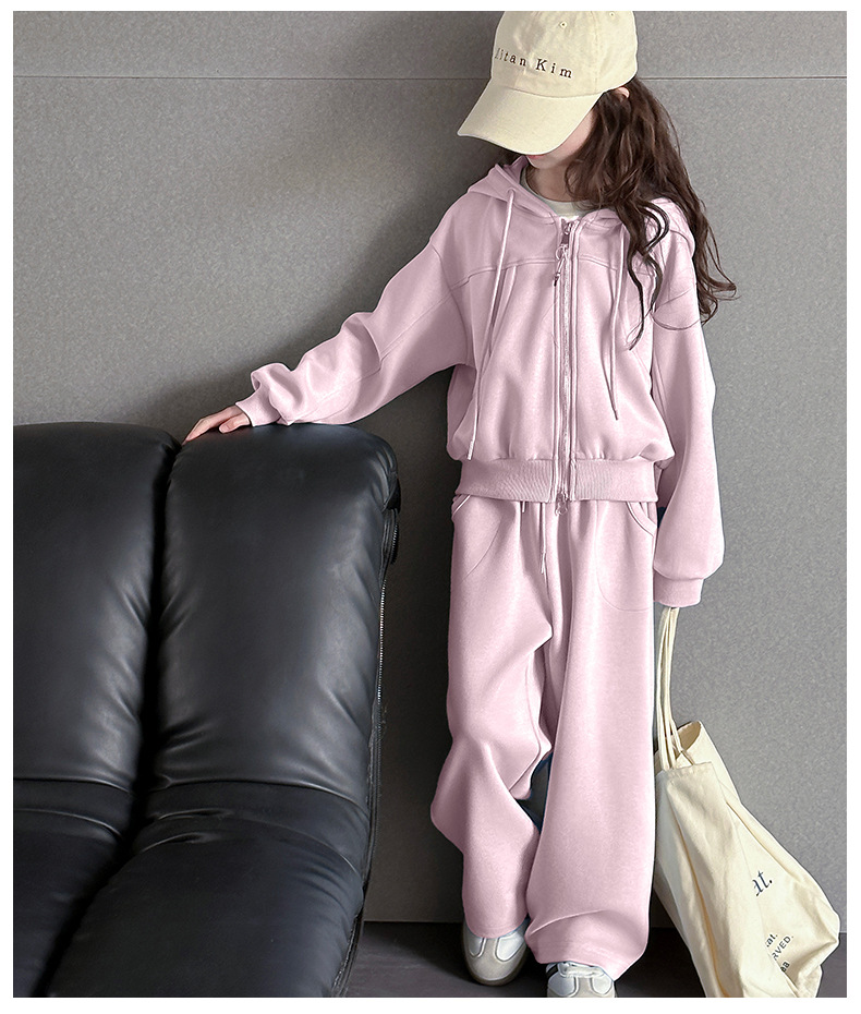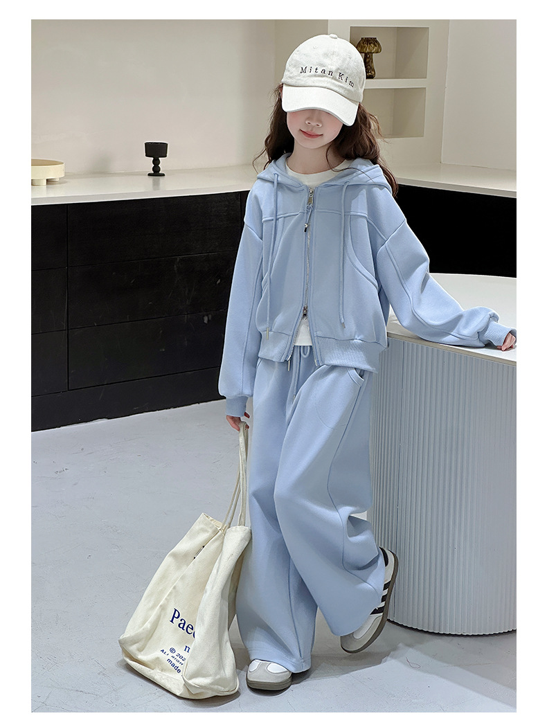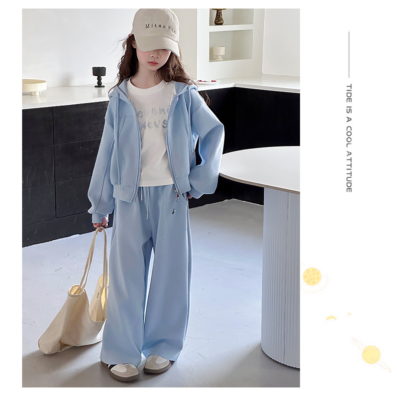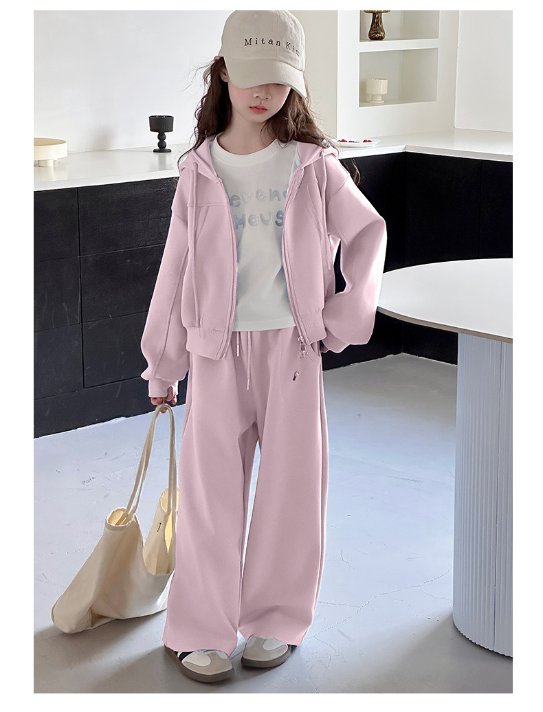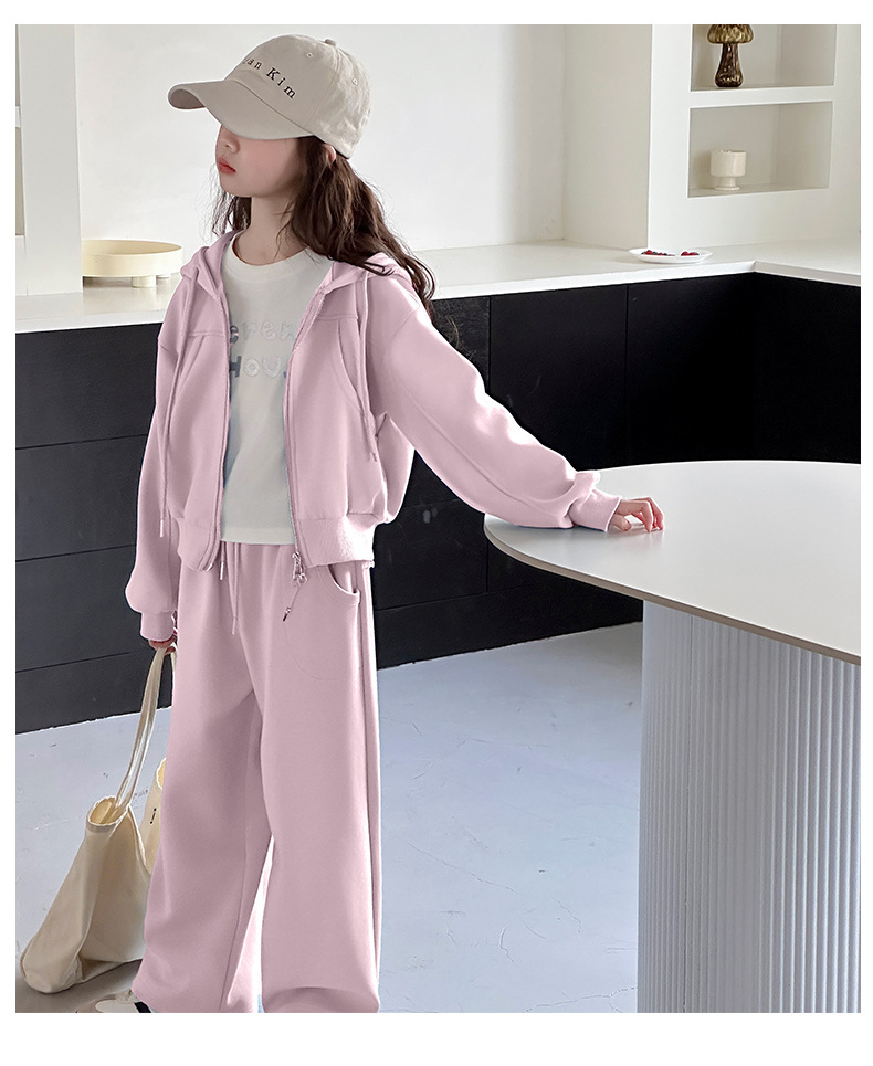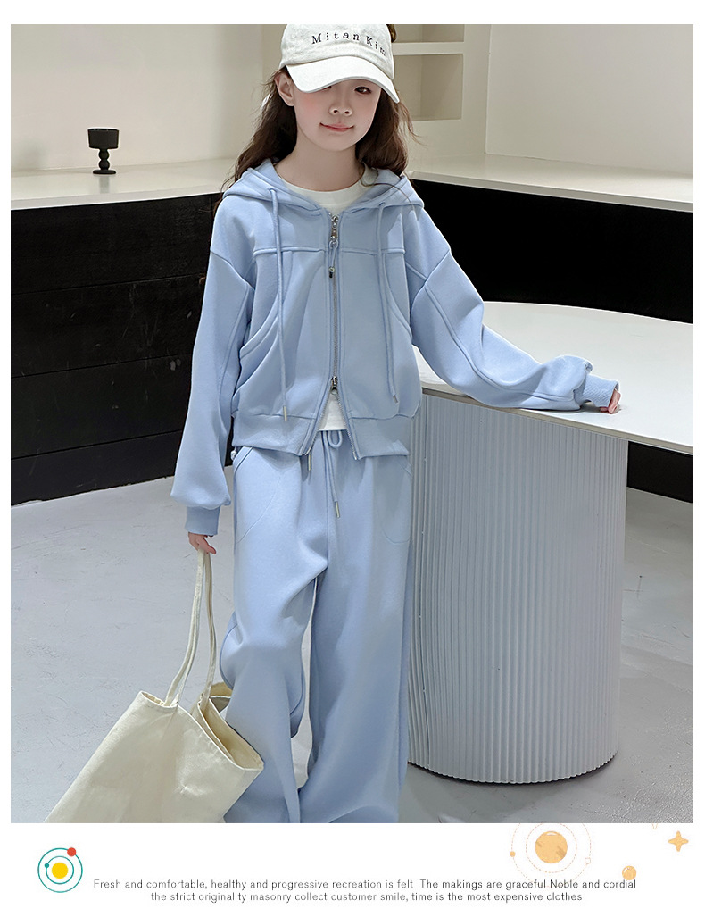 소녀 스포츠 세트 봄과 가을 2025 새로운 어린이 니트 후드 스웨터 바지 조커 투피스 한국 스타일스토어 가기