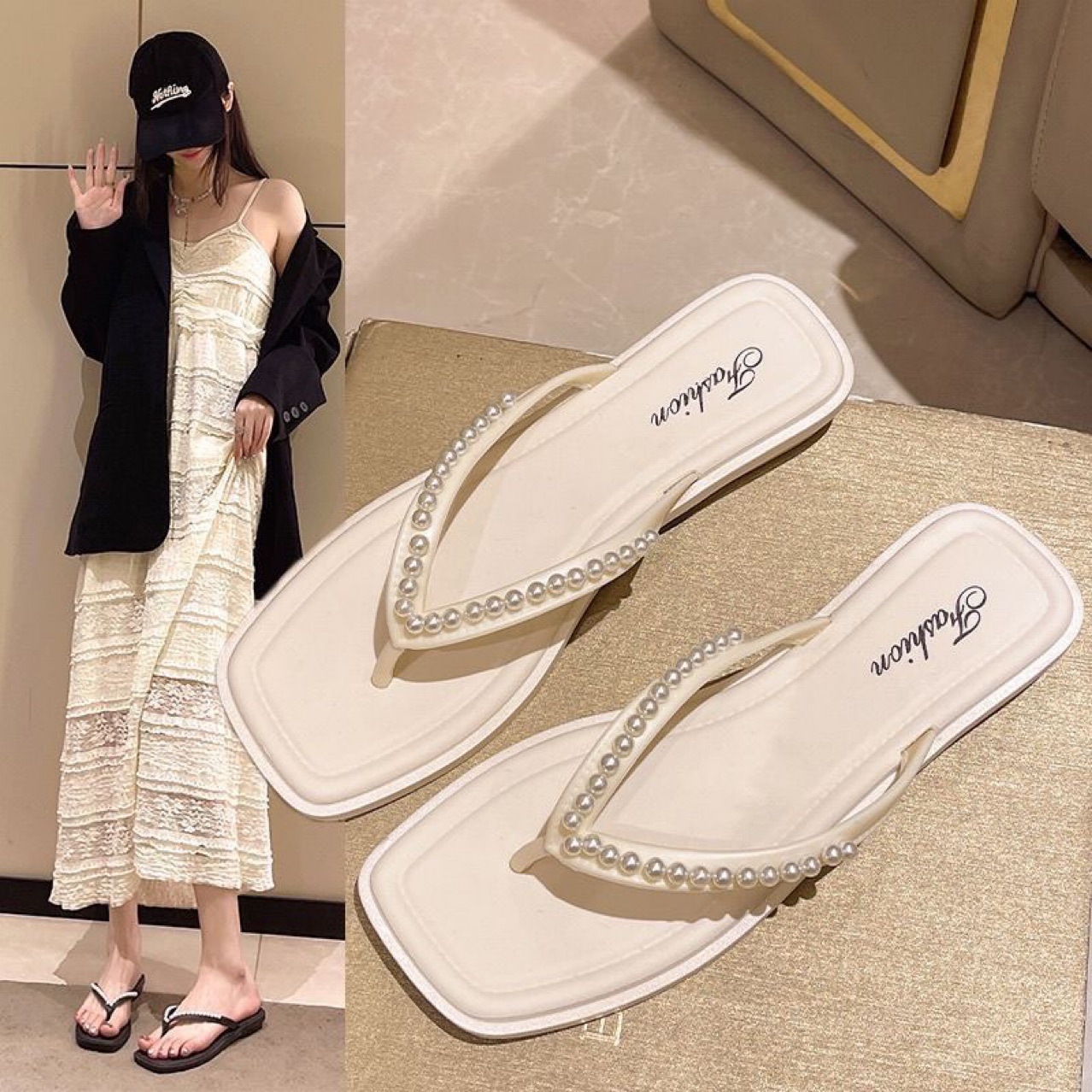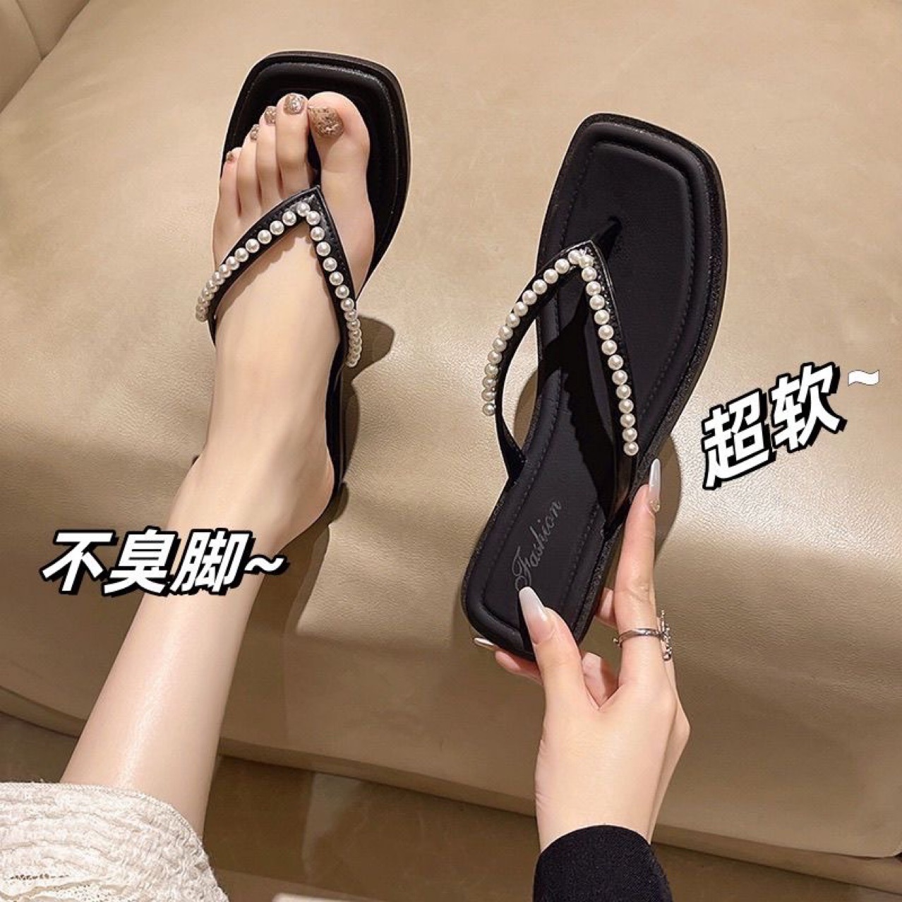 2025 여름 인터넷 유명 Ins 플립 플롭 여성 플립 플롭 편안한 비치 착용 요정 플랫 펄 슬리퍼 여성용스토어 가기
