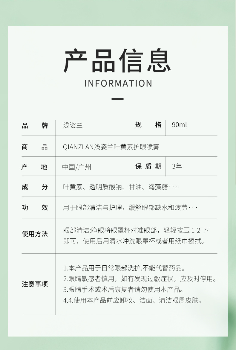 • Qianzi 난초 루테인 아이 스프레이 90ml