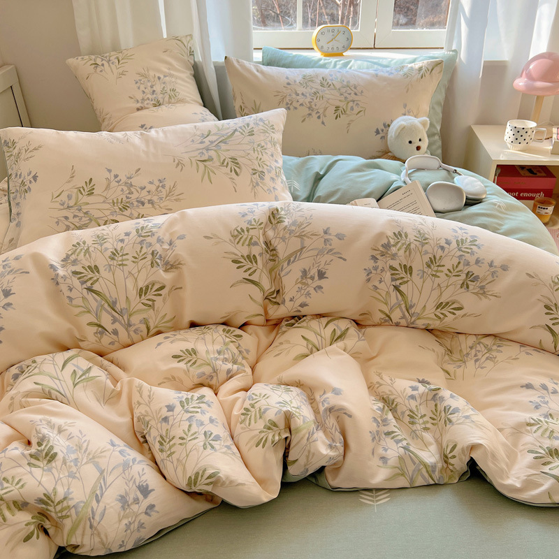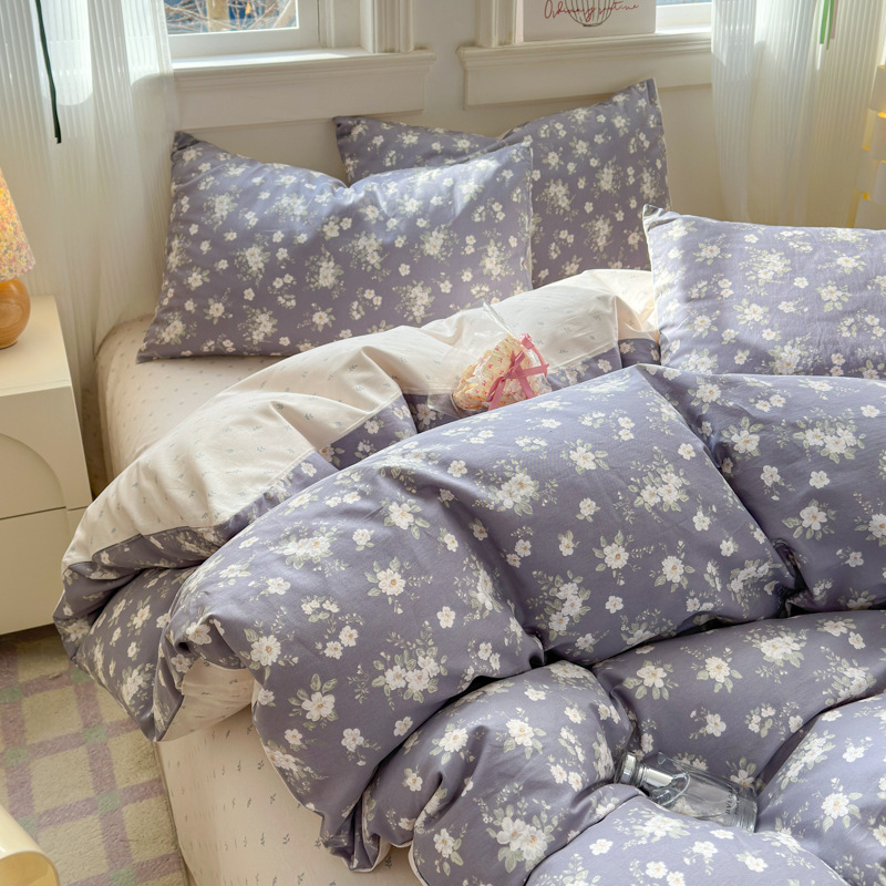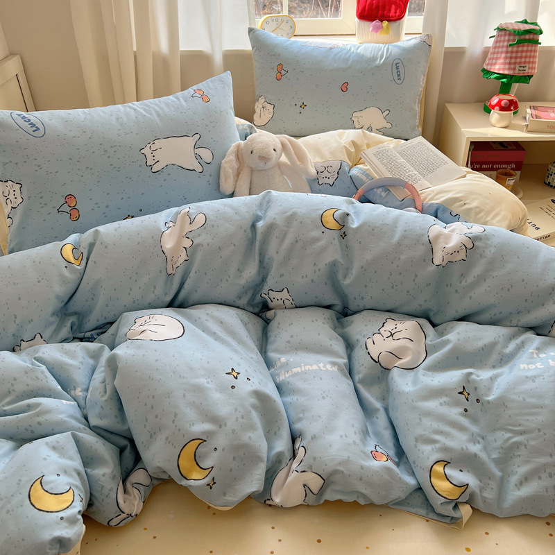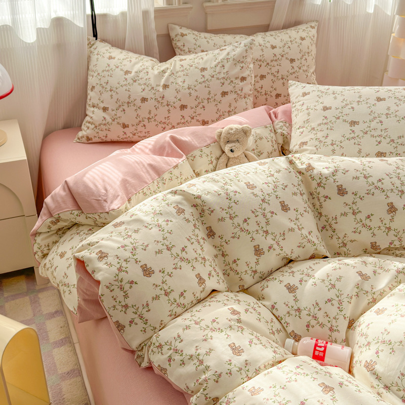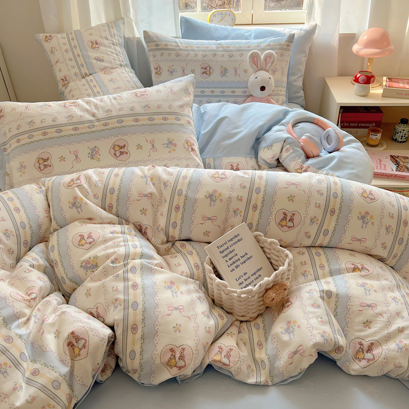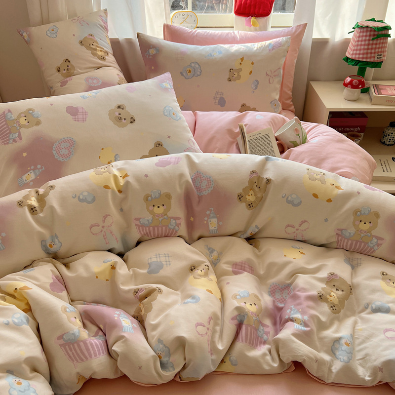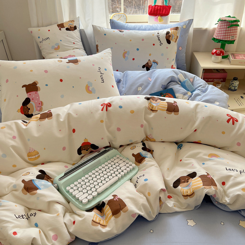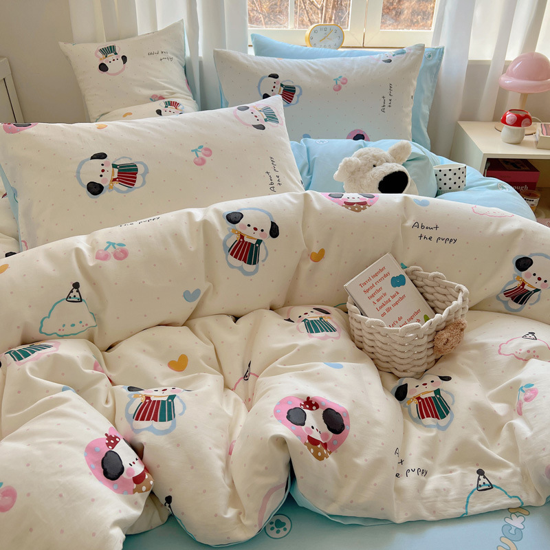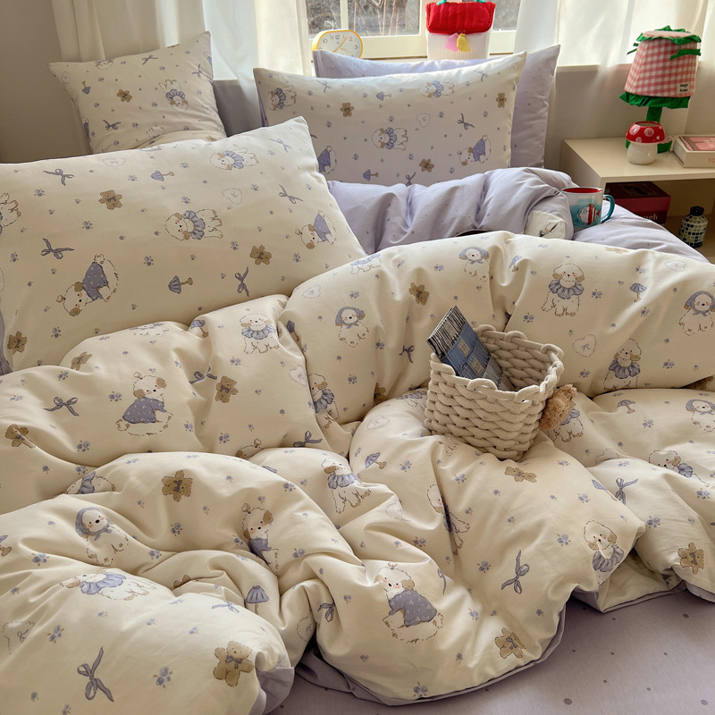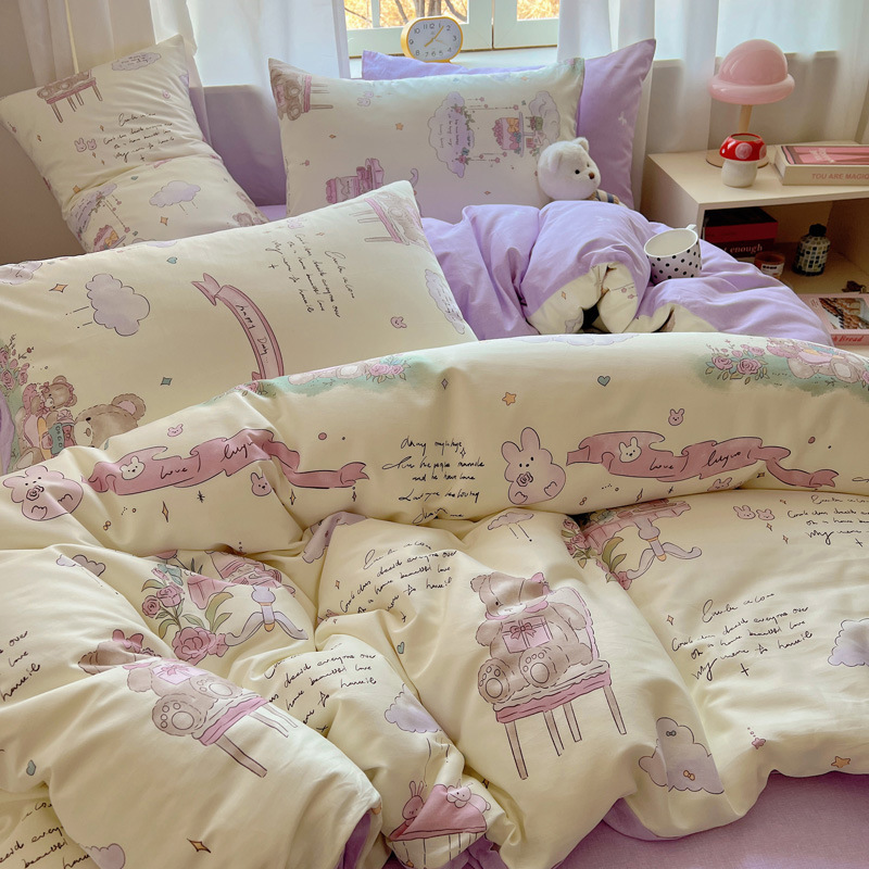 2025 봄 신간 스타일 만화 작은 신선한 면 4 피스 코튼 그물 레드 퀼트 커버 침대 시트 3 피스 세트스토어 가기