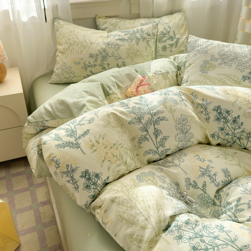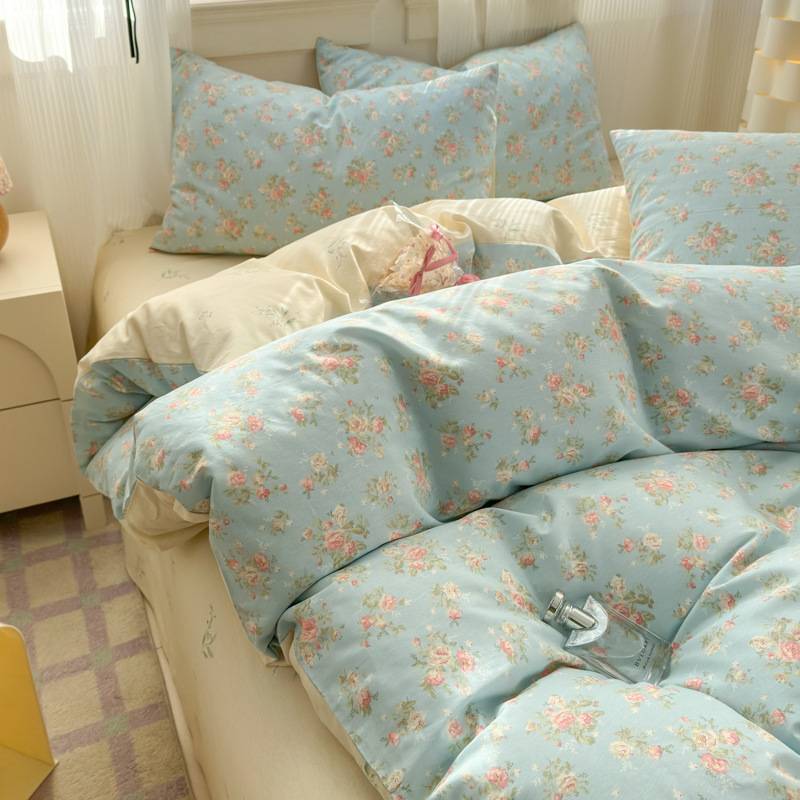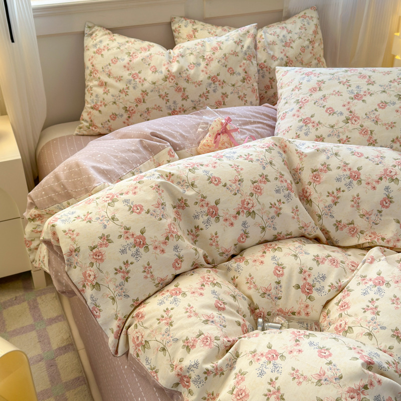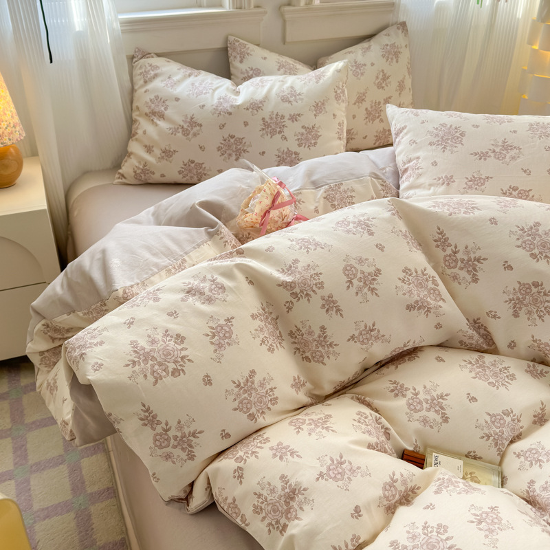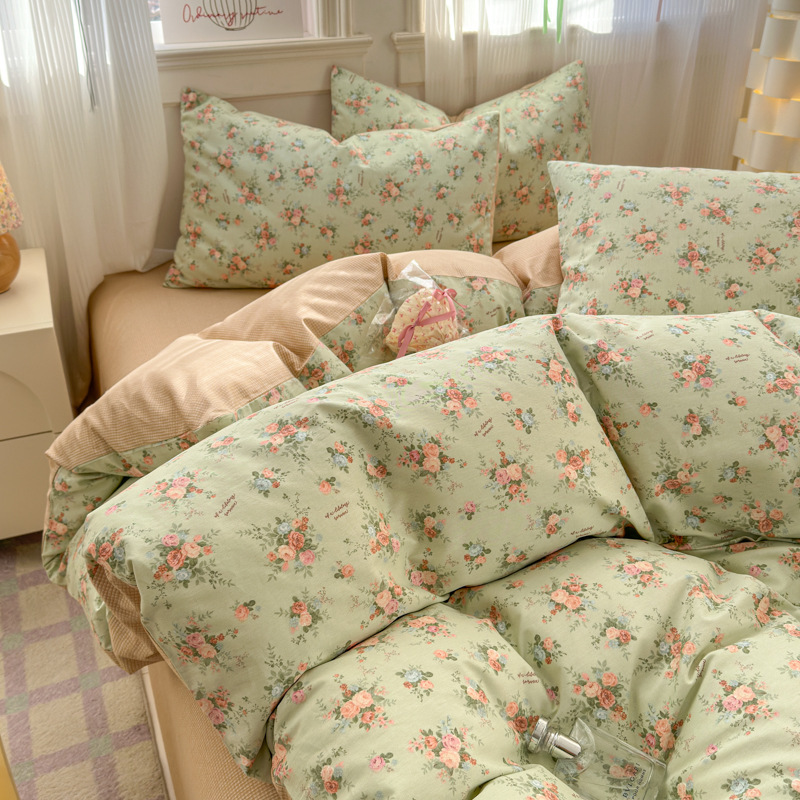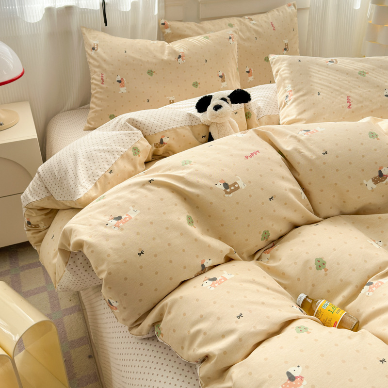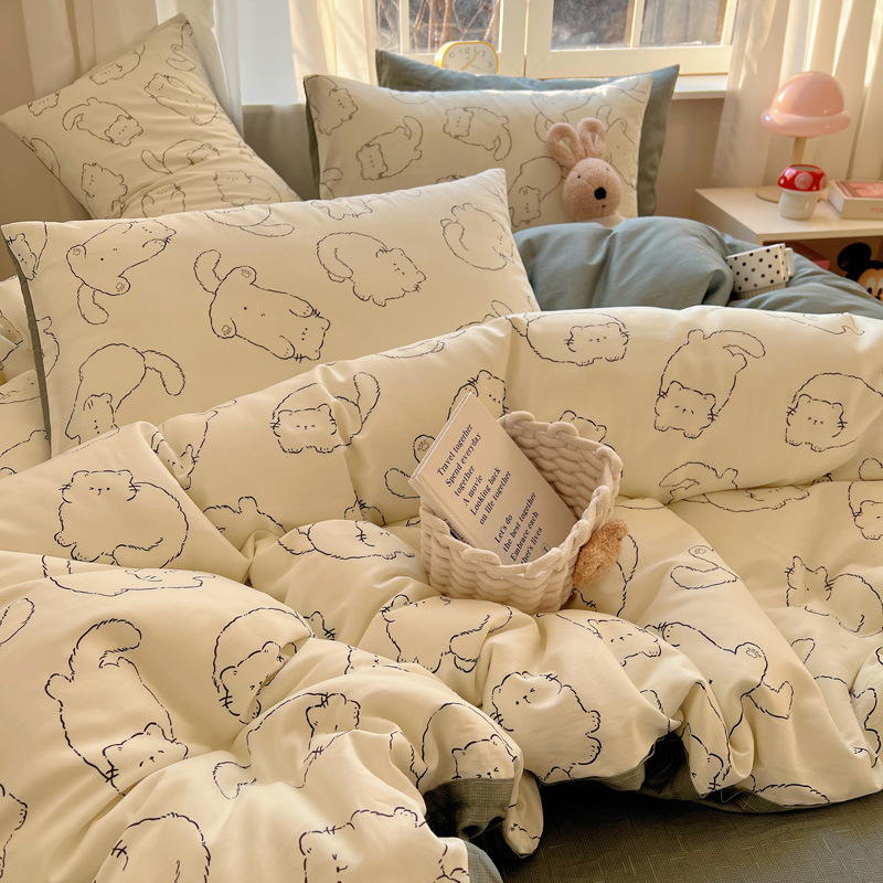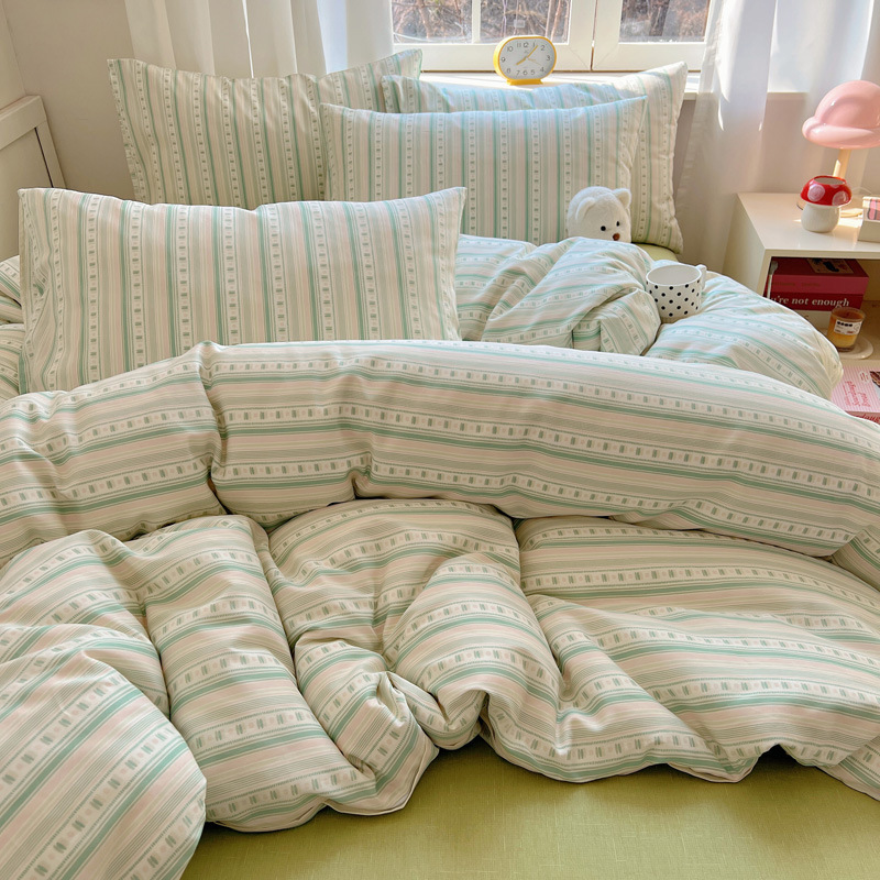 2025 봄 신간 스타일 만화 작은 신선한 면 4 피스 코튼 그물 레드 퀼트 커버 침대 시트 3 피스 세트