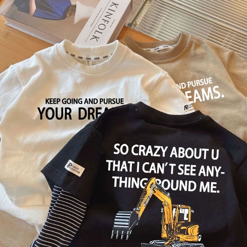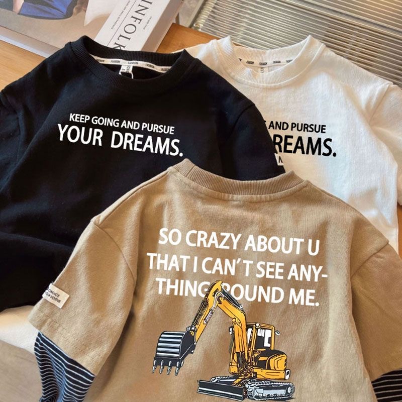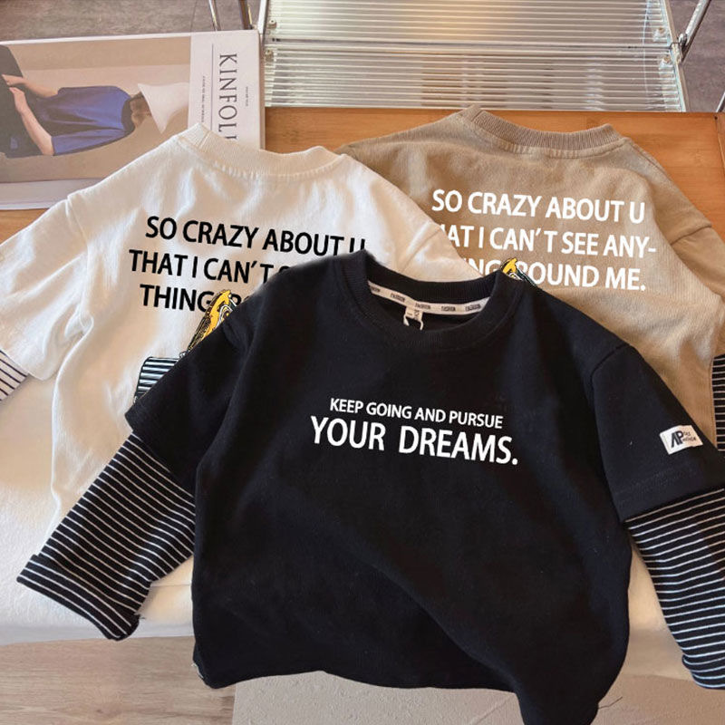 어린이 옷 가짜 두 조각 소년의 긴 소매 티셔츠 봄과 가을 새로운 아기 어린이 기지 셔츠 최고 트렌디 T스토어 가기