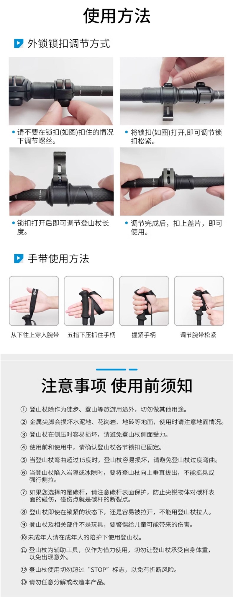 Yu You 야외 하이킹 클라이밍 스틱 알루미늄 합금 외부 잠금 3 섹션 텔레스코픽 남성과 여성의 워킹 스틱 클라이밍 스틱 장비