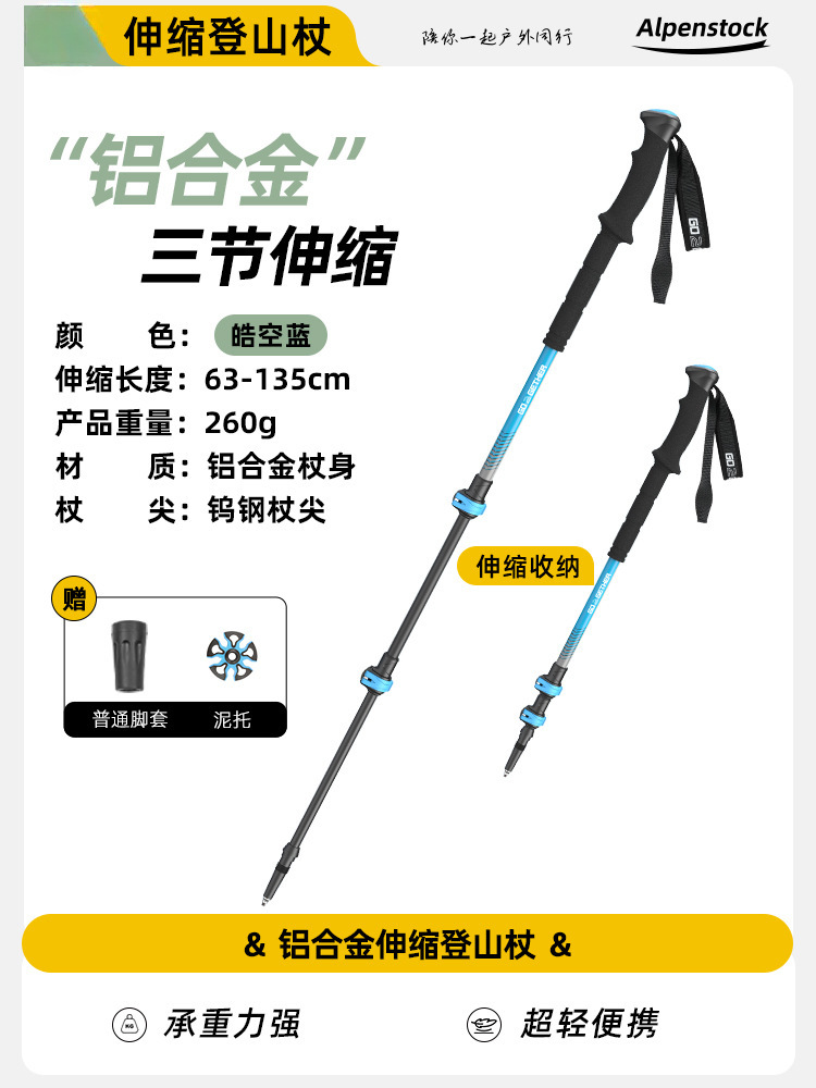 Yu You 야외 하이킹 클라이밍 스틱 알루미늄 합금 외부 잠금 3 섹션 텔레스코픽 남성과 여성의 워킹 스틱 클라이밍 스틱 장비스토어 가기