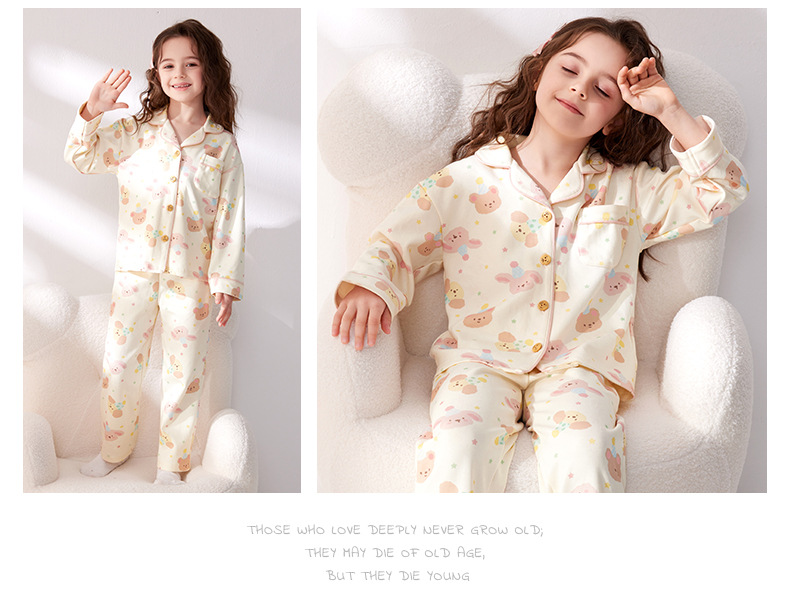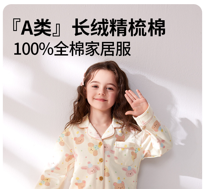 2025 새로운 소녀 잠옷 봄과 가을 소녀 면화 긴 소매 큰 어린이 면화 어린이 집 옷 도매