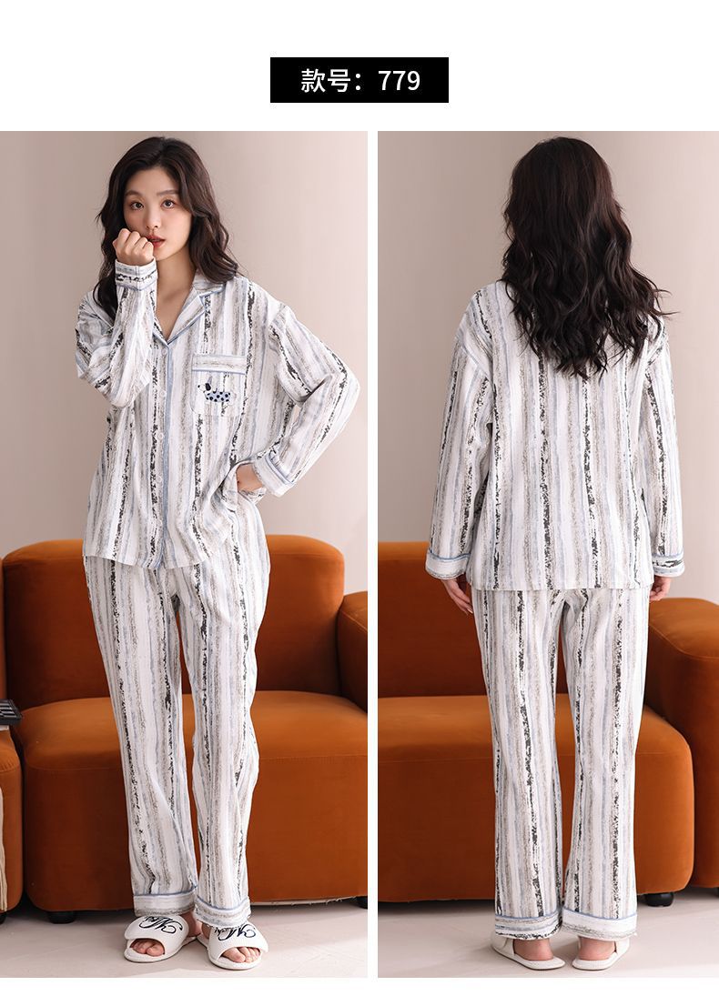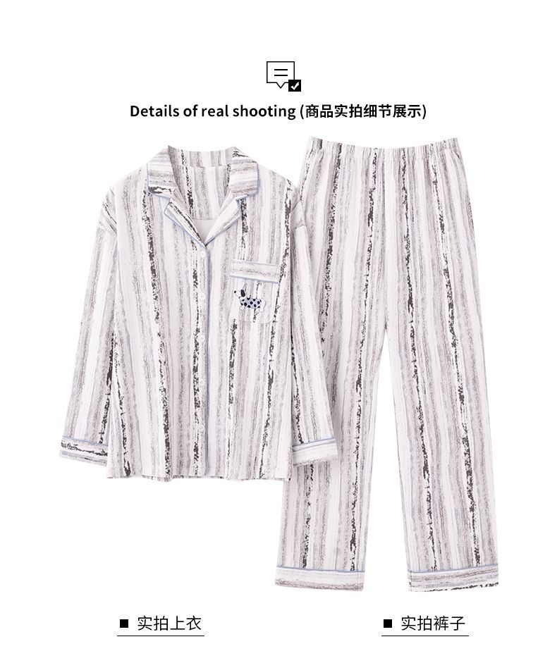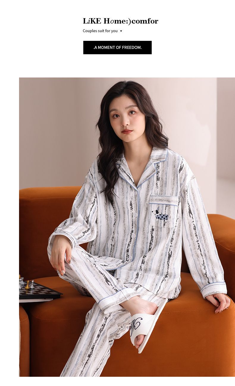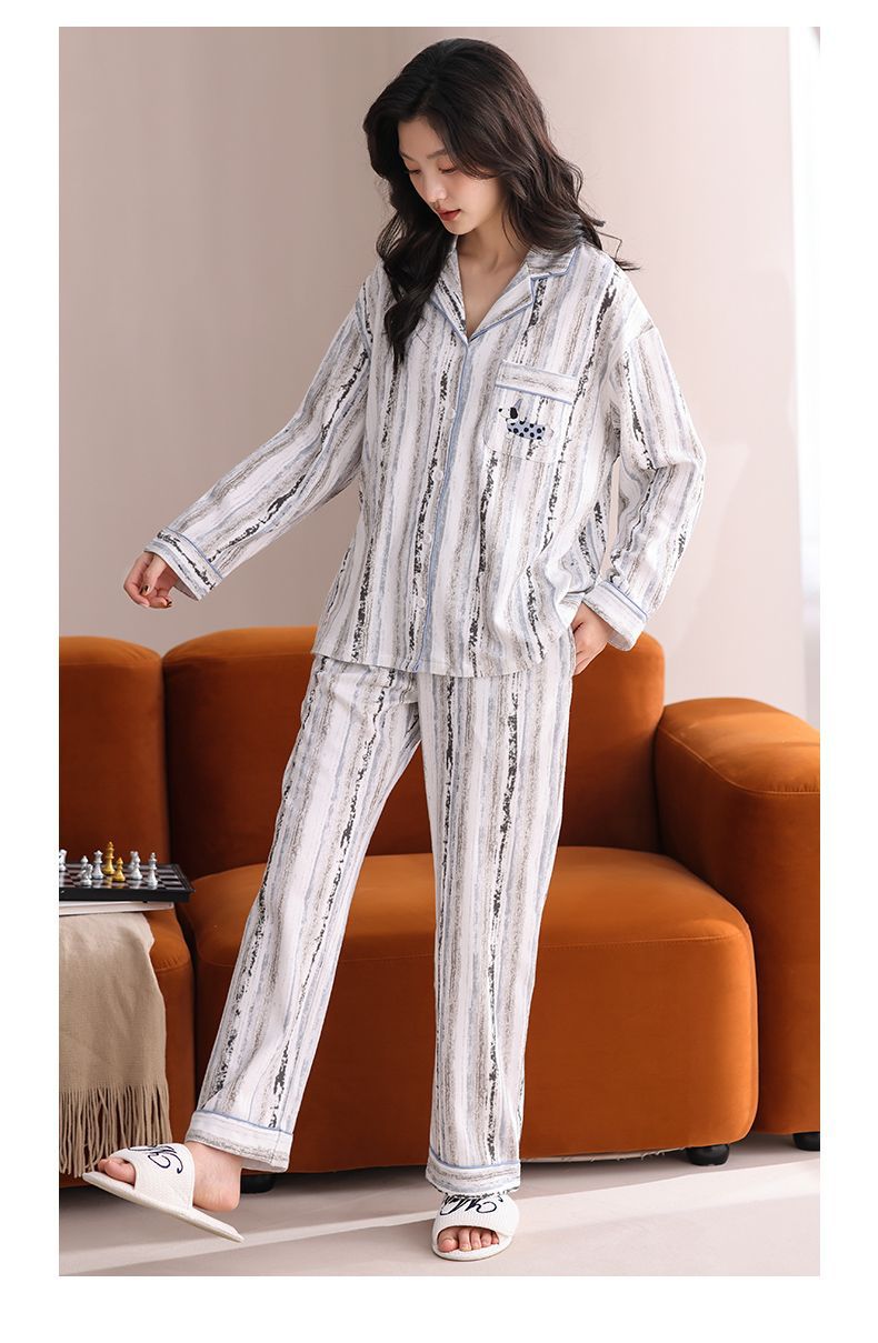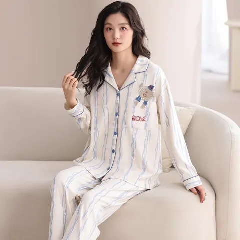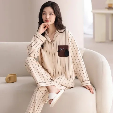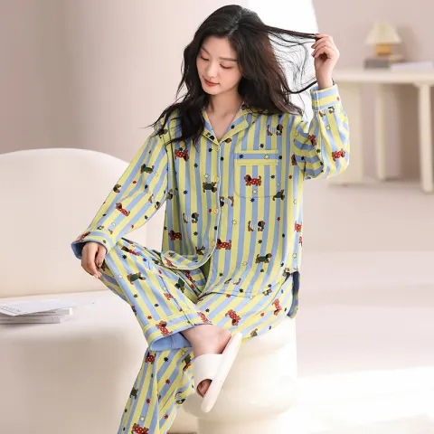 봄과 가을 새 잠옷 여성용 코튼 긴팔 간단한 하이 엔드 착용 편안한 투피스 홈 의류 세트스토어 가기