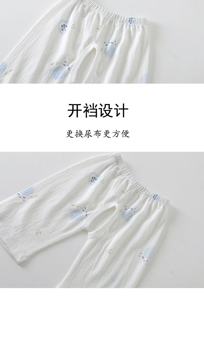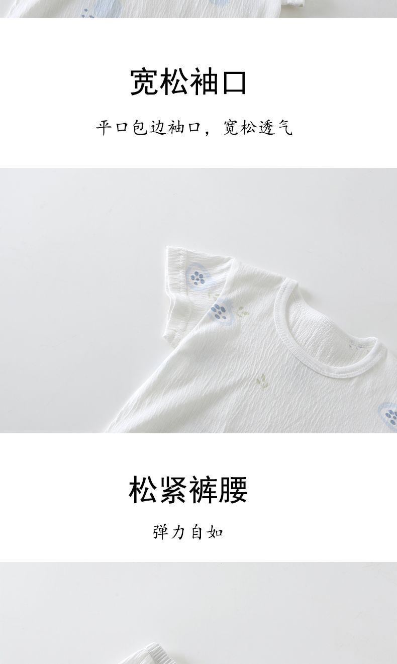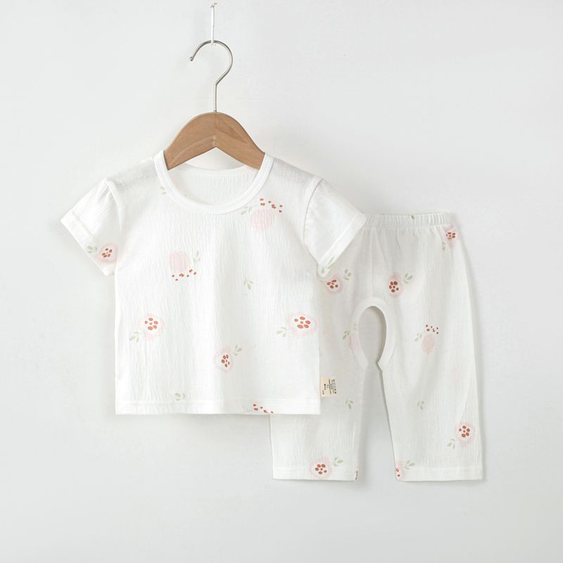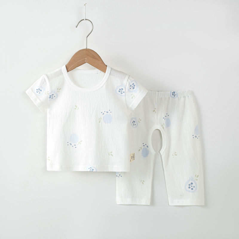 어린이 잠옷 홈 의류 소년 소녀 아기를위한 얇은 에어컨 옷 여름 어린이 크로트 오픈 카프리 바지 반팔 세트스토어 가기
