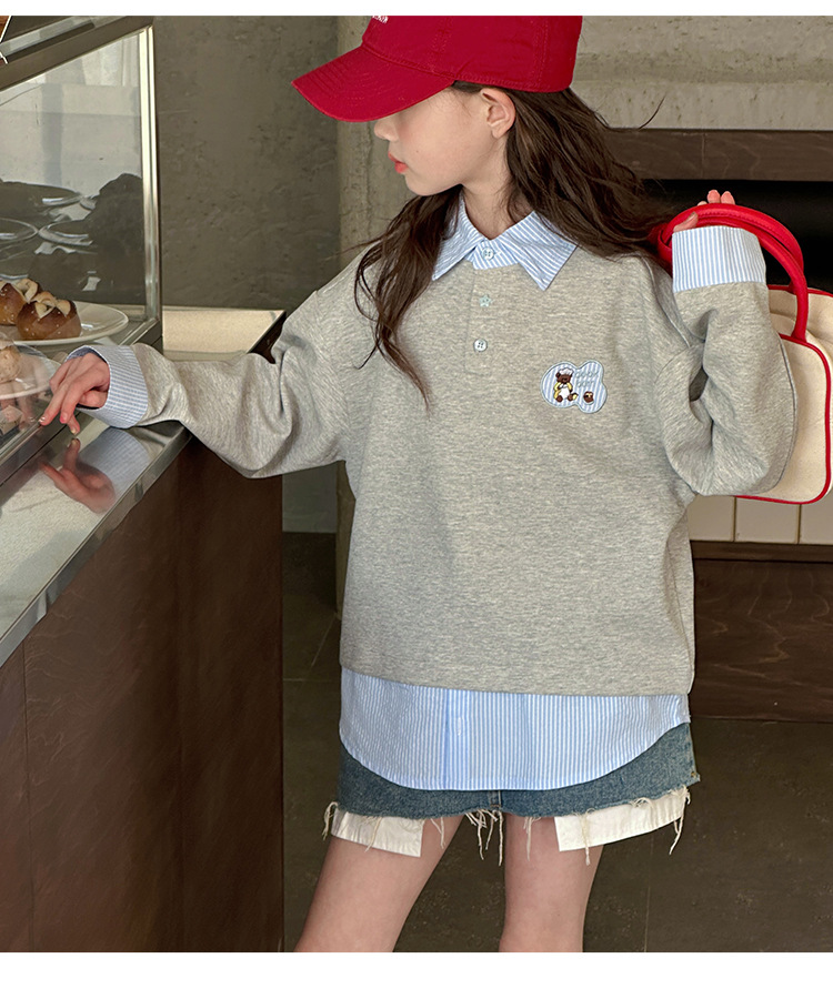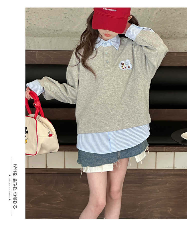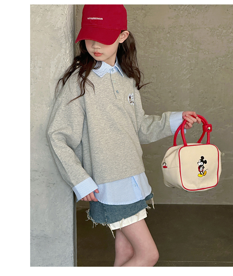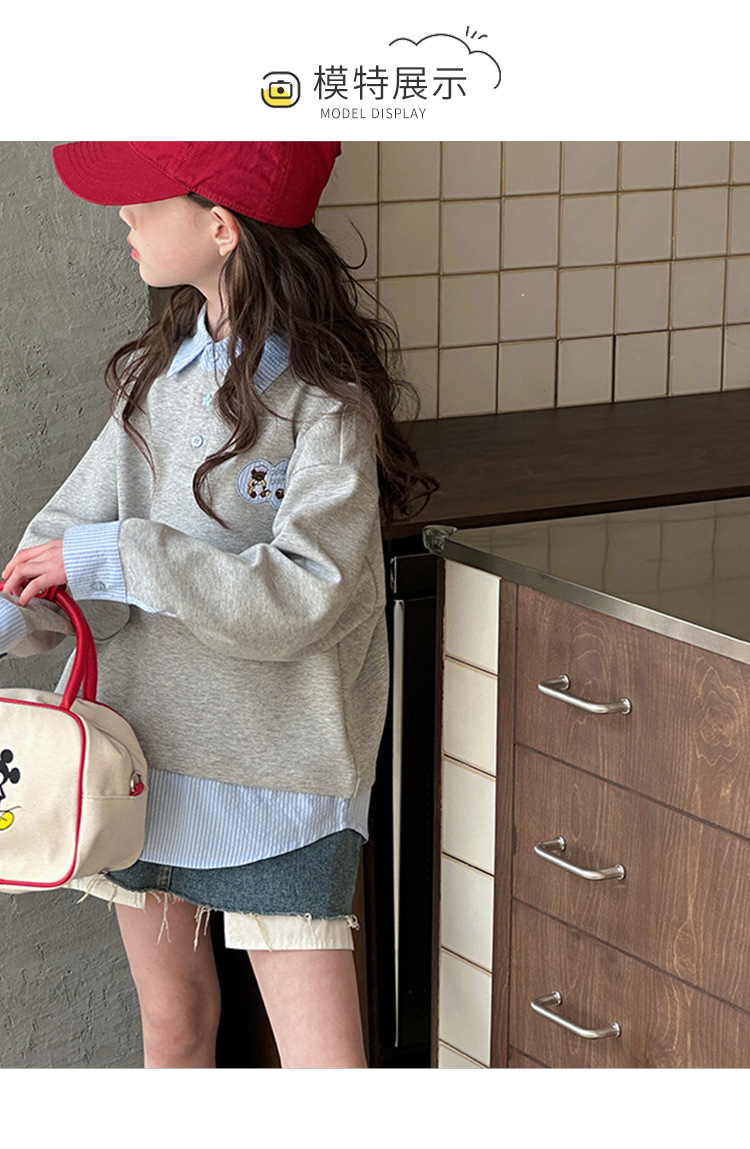 가짜 투피스 소녀 스웨터 2025 년 봄과 가을 새로운 도착 서양식 어린이 봄 옷 큰 어린이 셔츠 칼라 캐주얼 긴팔 탑스토어 가기