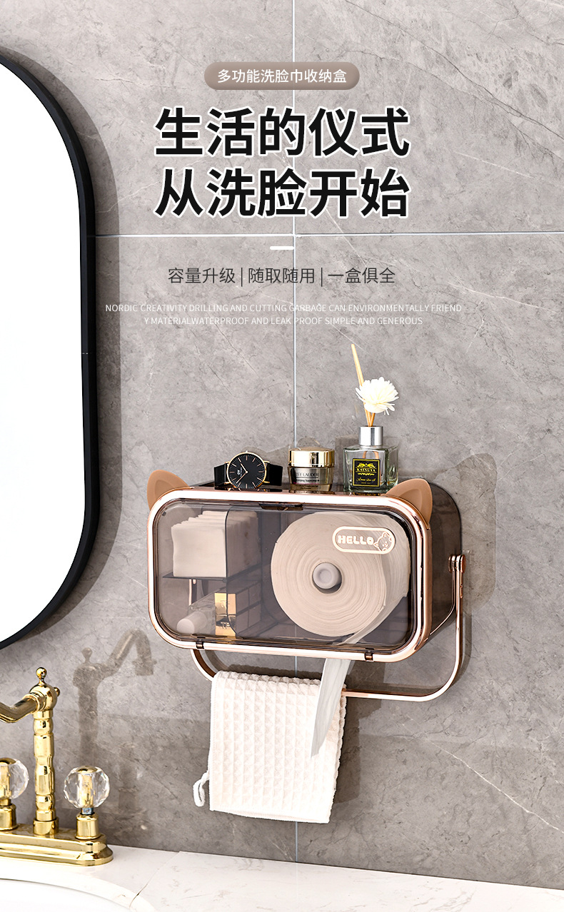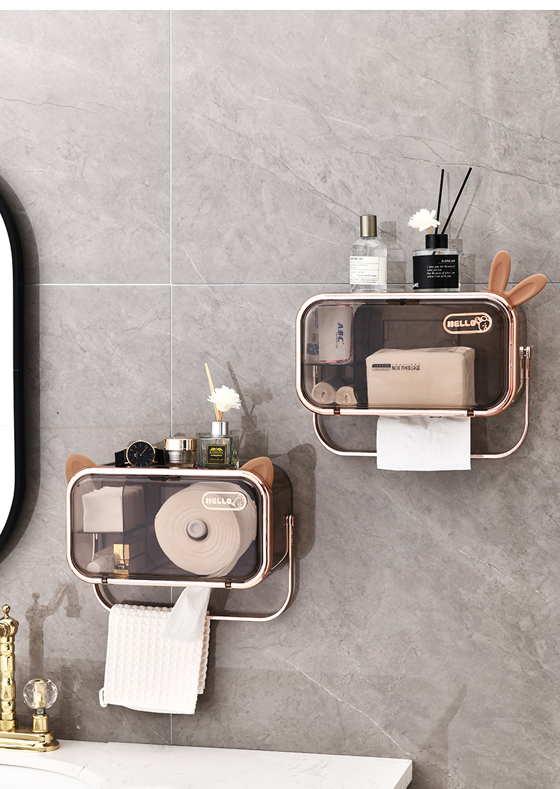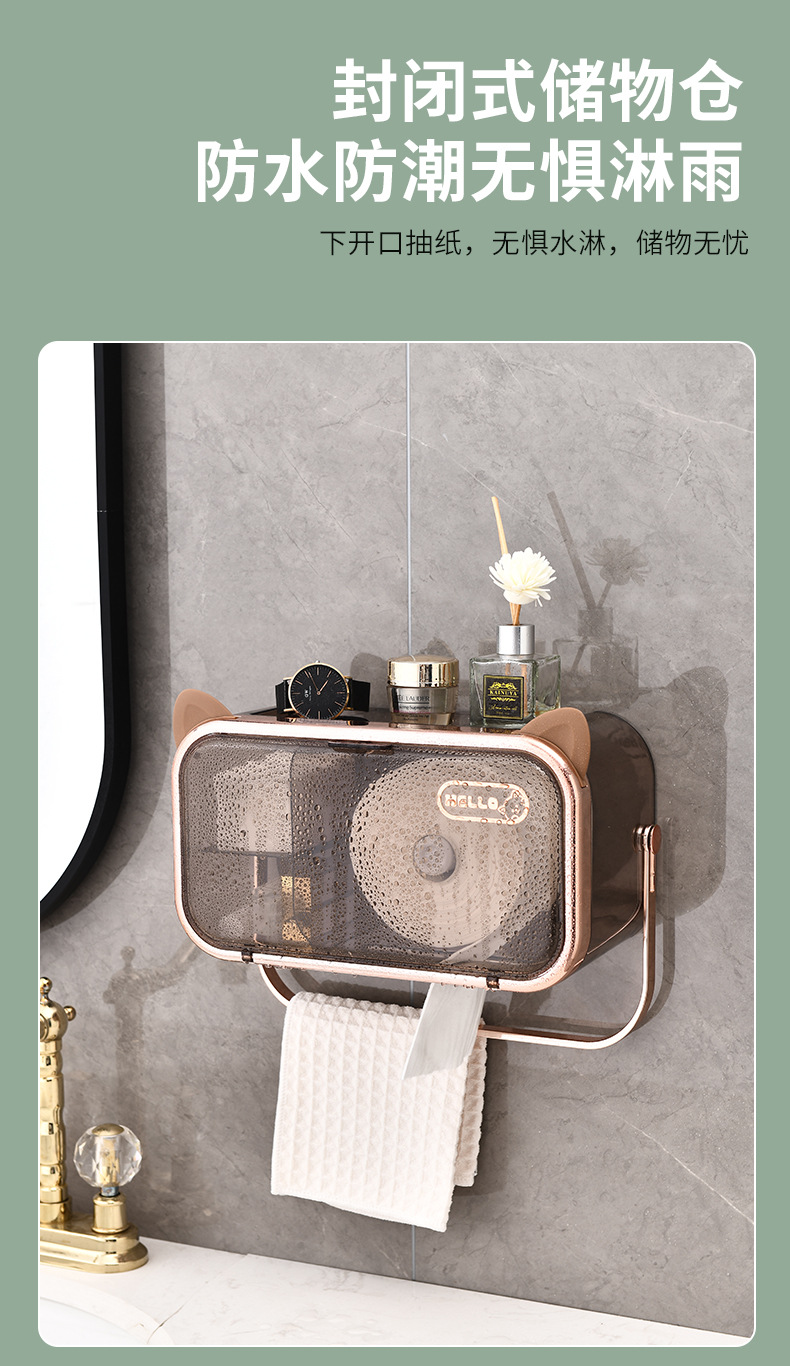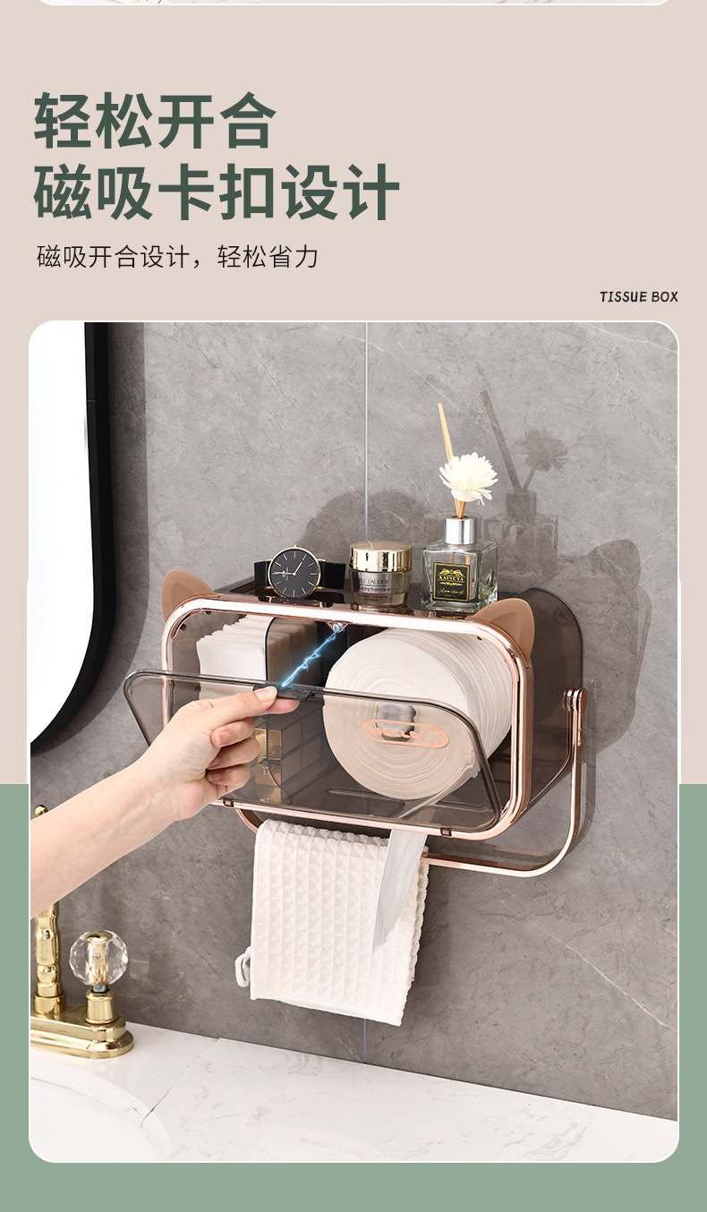 다기능 펀치없는 벽걸이 티슈 랙 욕실 화장실 방수 및 방진 종이 상자 빛 고급 향수 보관 랙스토어 가기