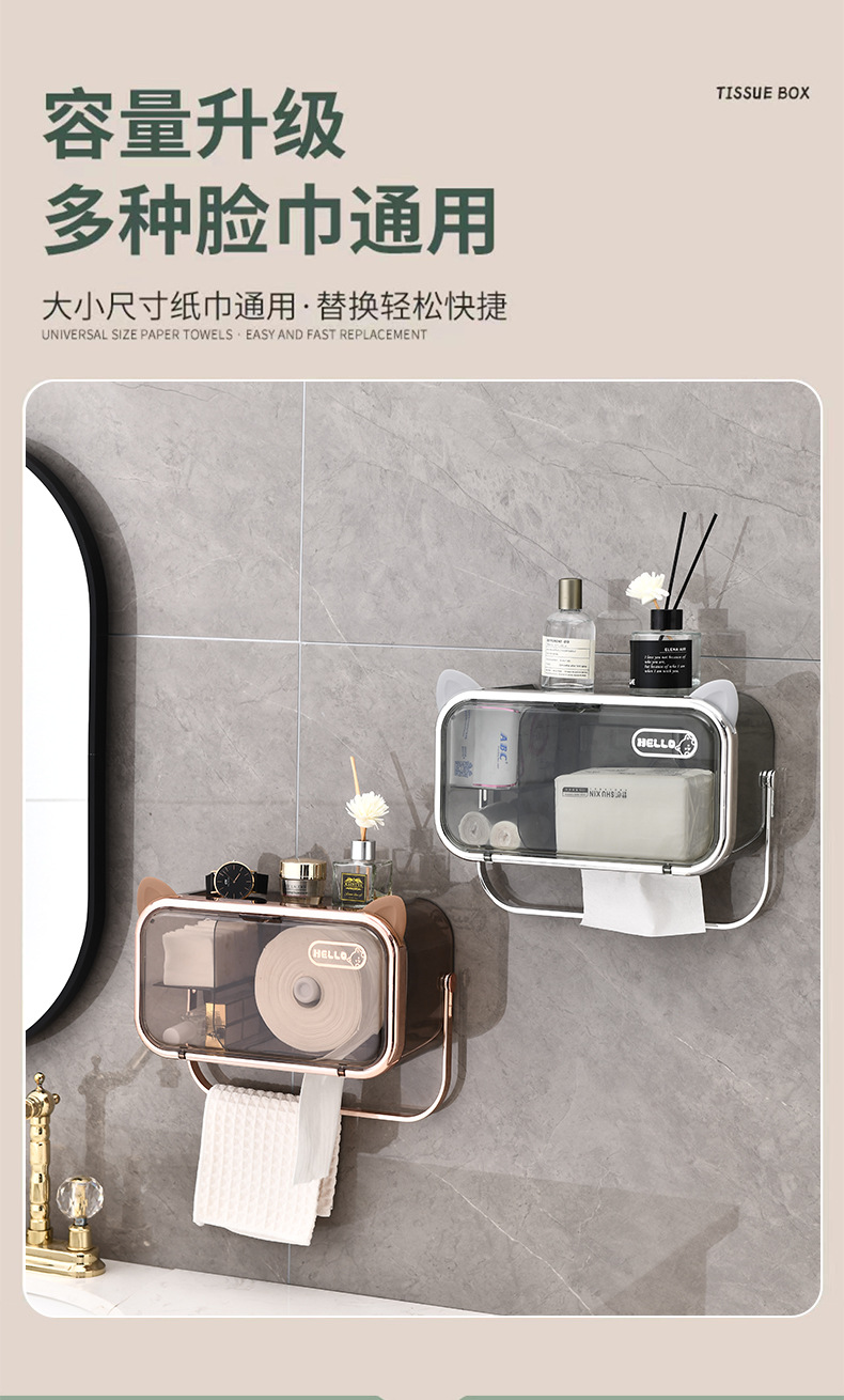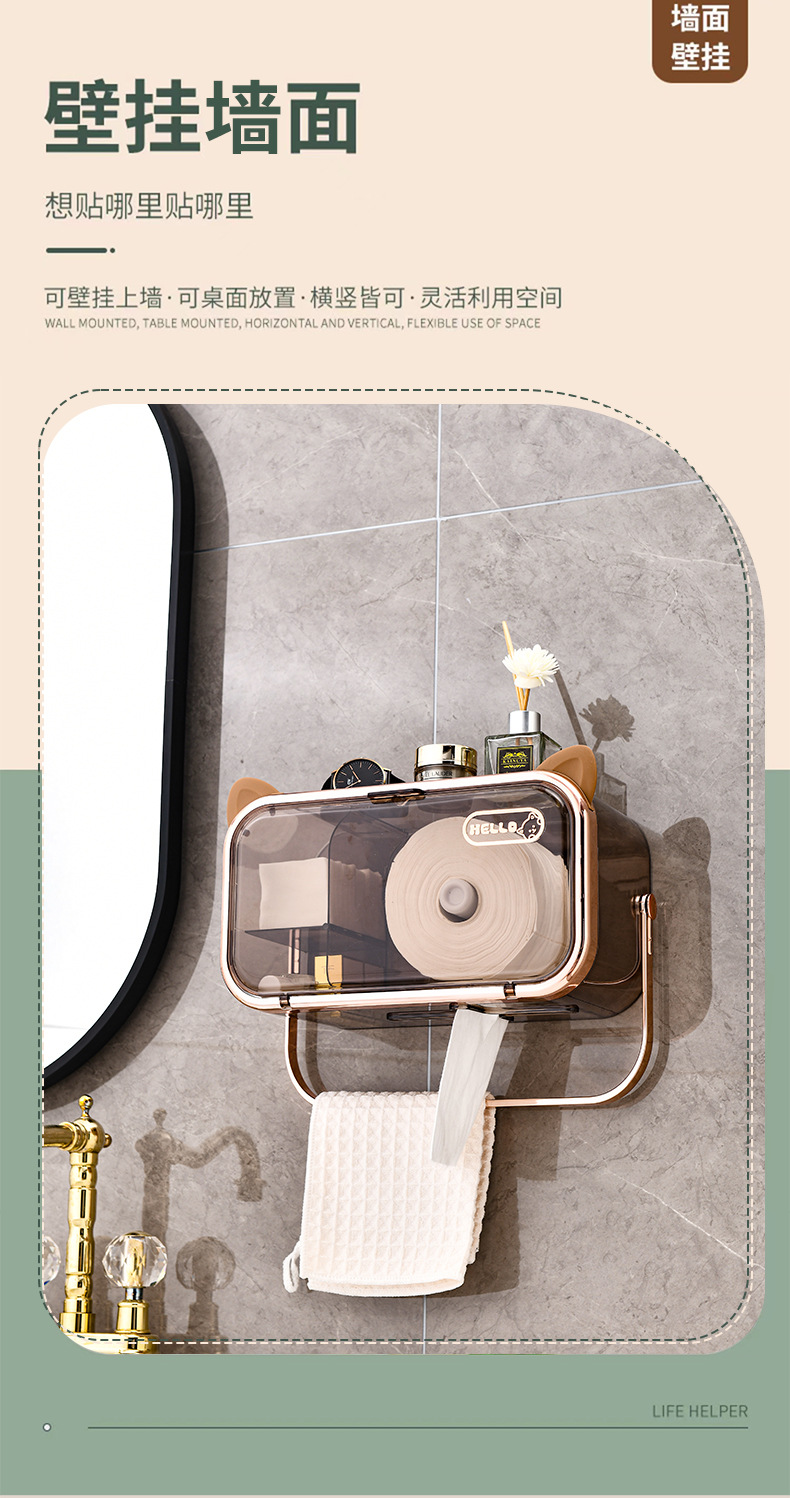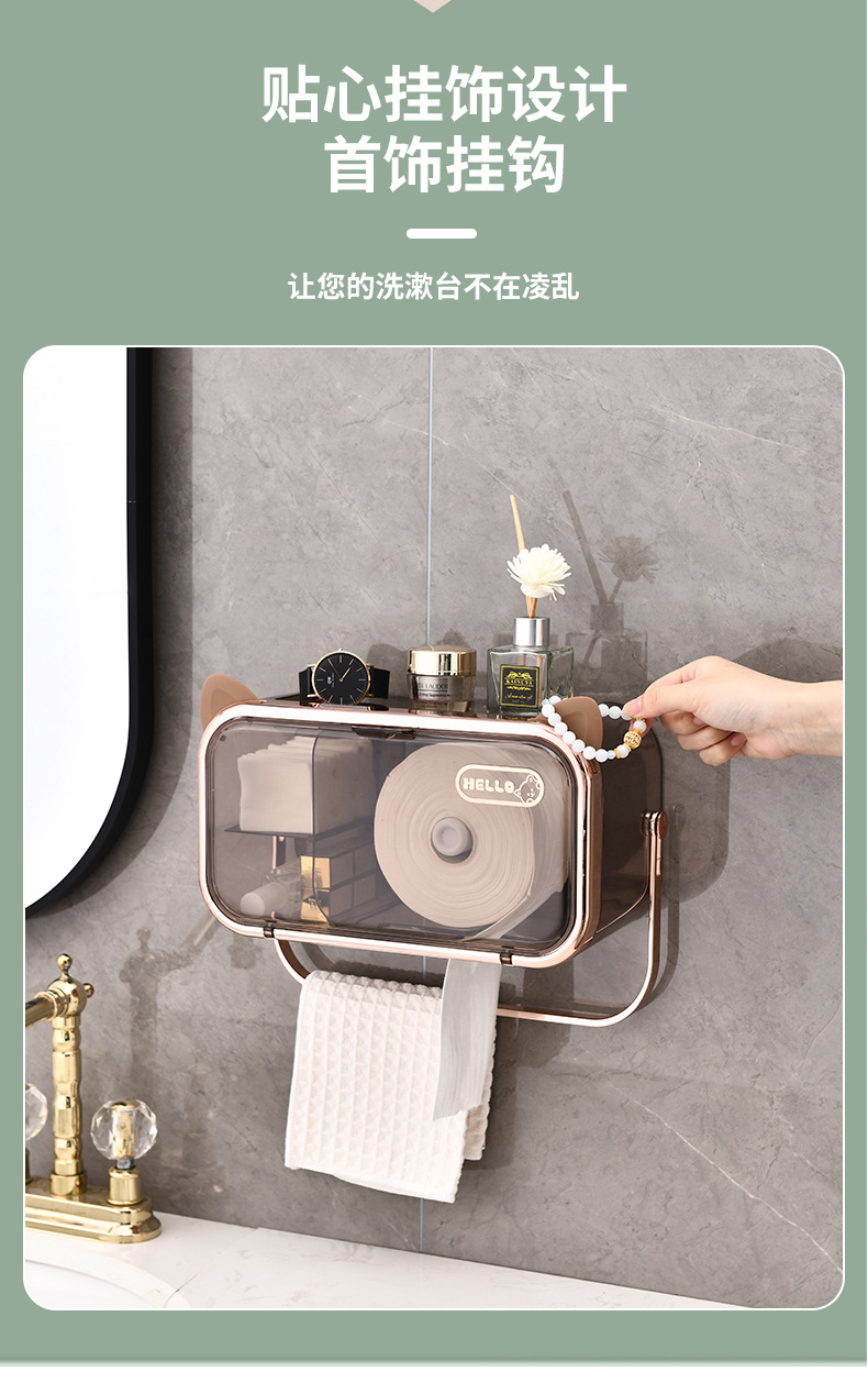다기능 펀치없는 벽걸이 티슈 랙 욕실 화장실 방수 및 방진 종이 상자 빛 고급 향수 보관 랙스토어 가기