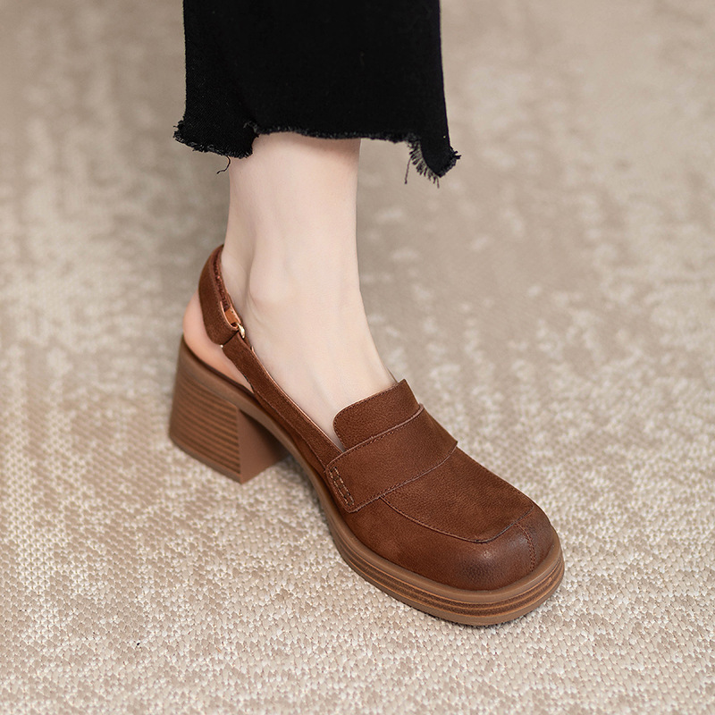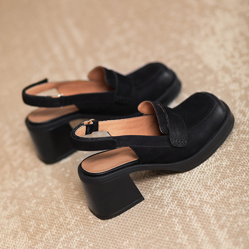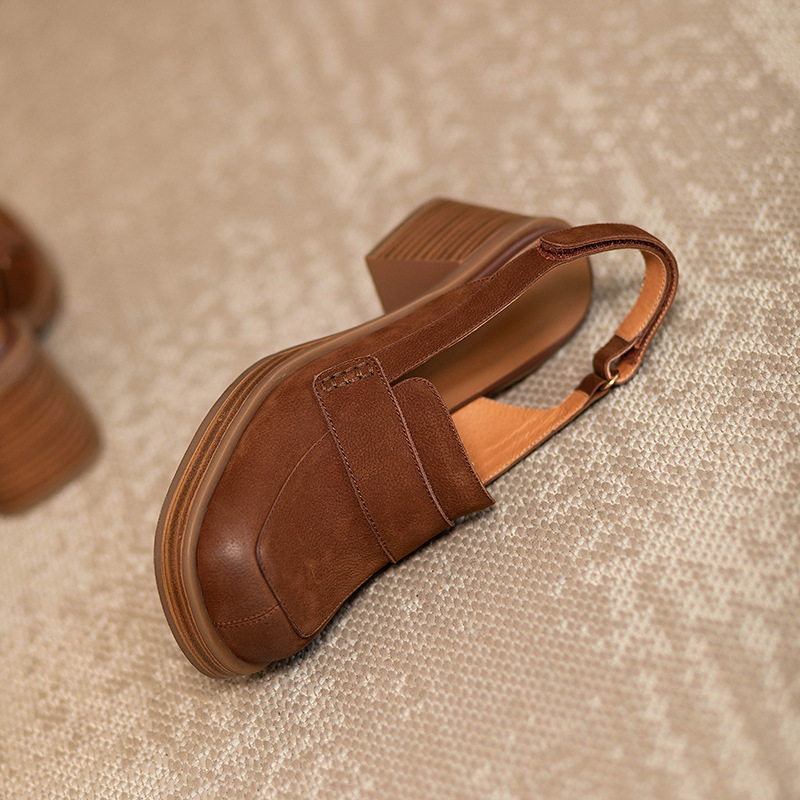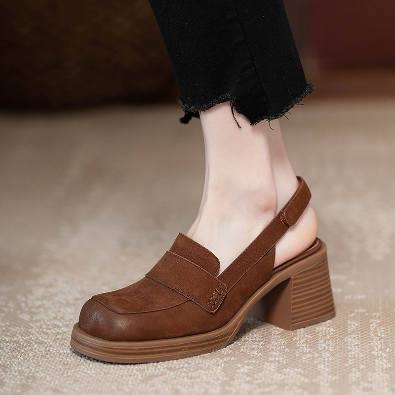 2025 새로운 도착 자이언트 큐브 토트 두꺼운 힐 샌들 여성용 레트로 두꺼운 싱글 라운드 발가락 뒤 빈 벨크로 하이힐