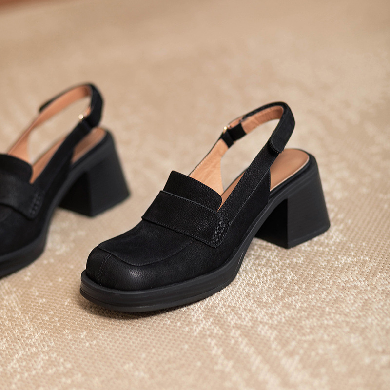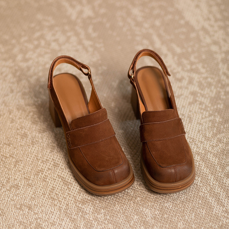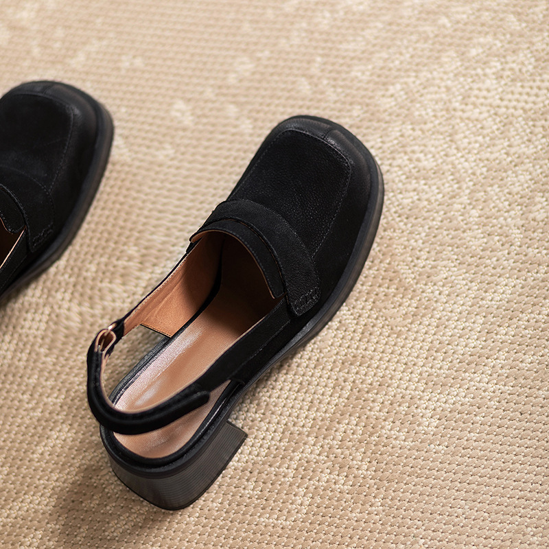 2025 새로운 도착 자이언트 큐브 토트 두꺼운 힐 샌들 여성용 레트로 두꺼운 싱글 라운드 발가락 뒤 빈 벨크로 하이힐스토어 가기