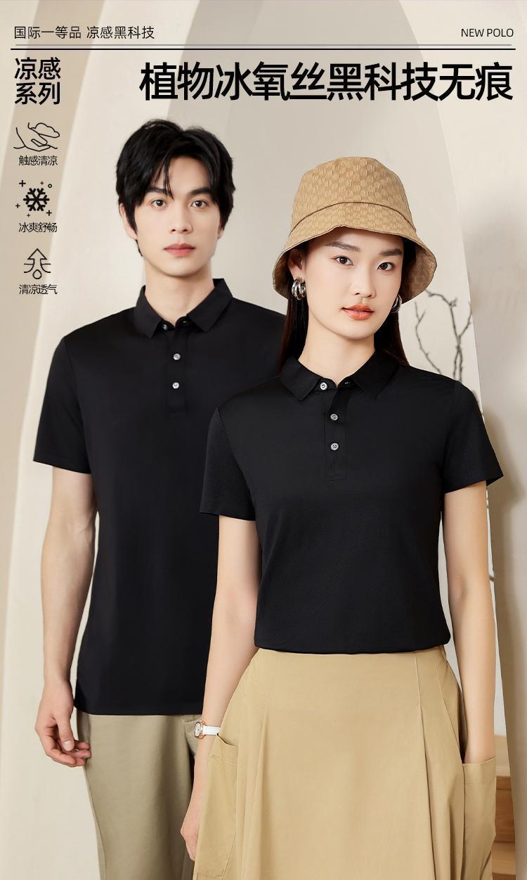 冰氧丝(下摆开叉)翻领短袖工作服刺绣文化衫工衣logo