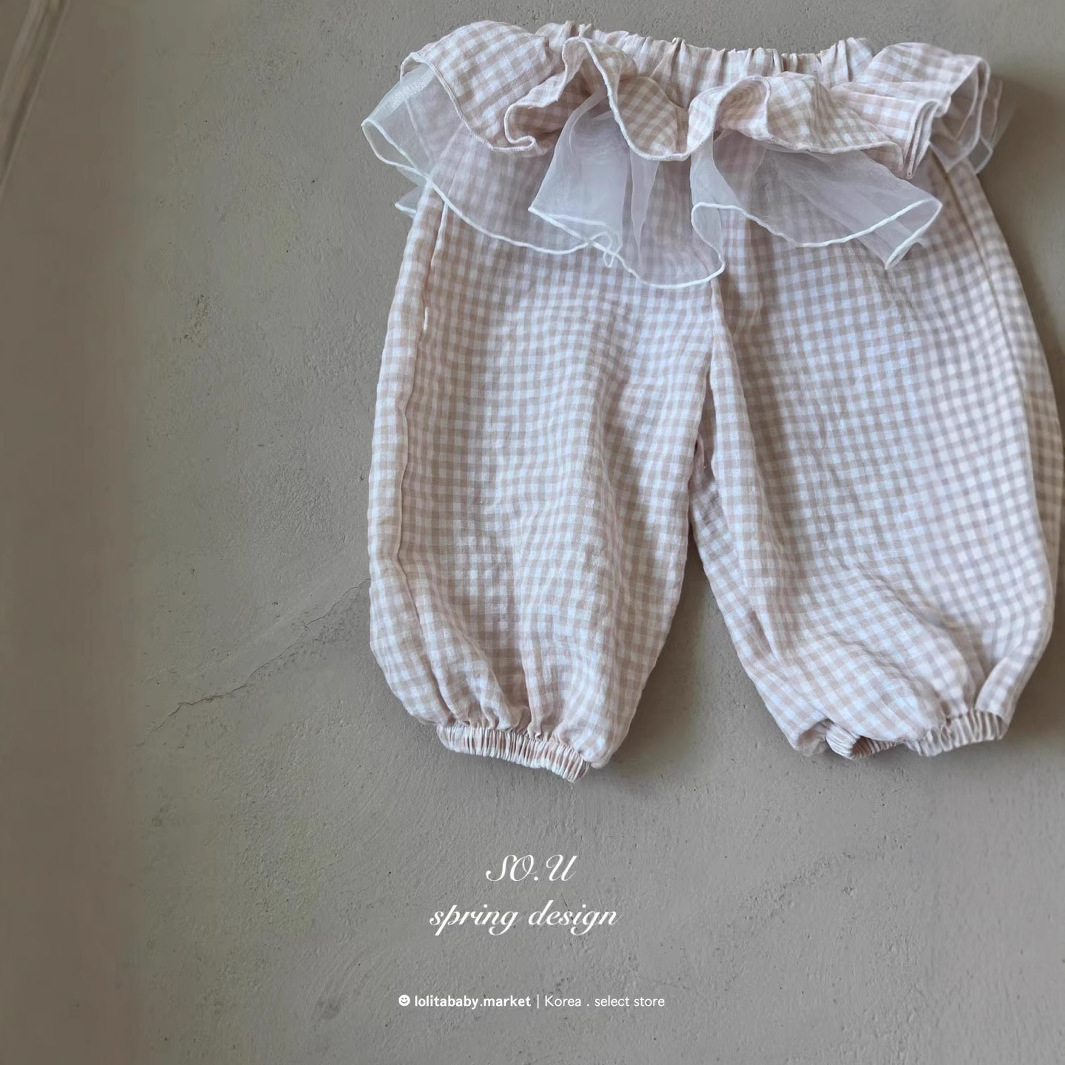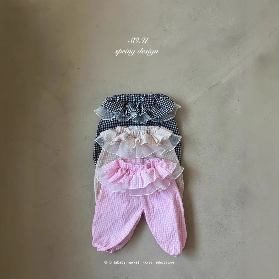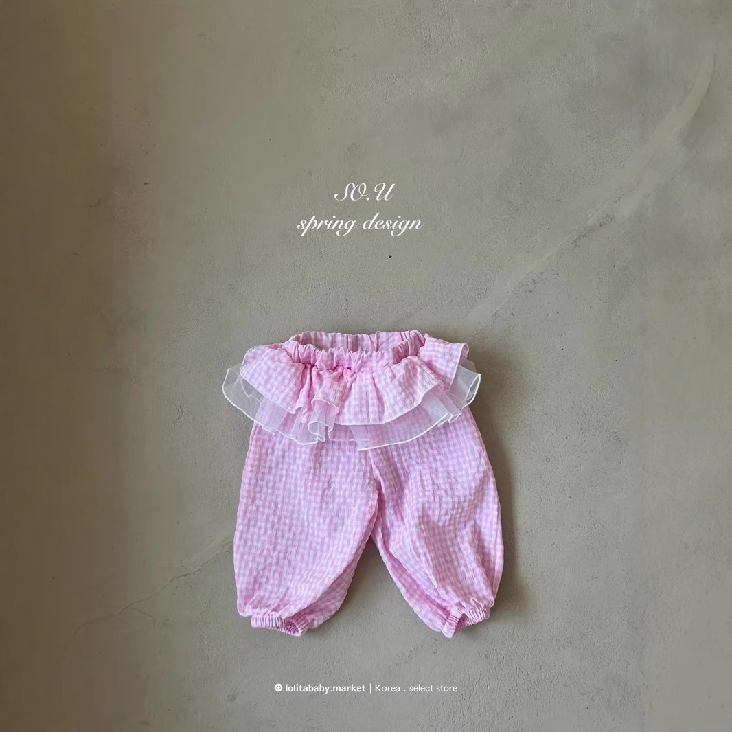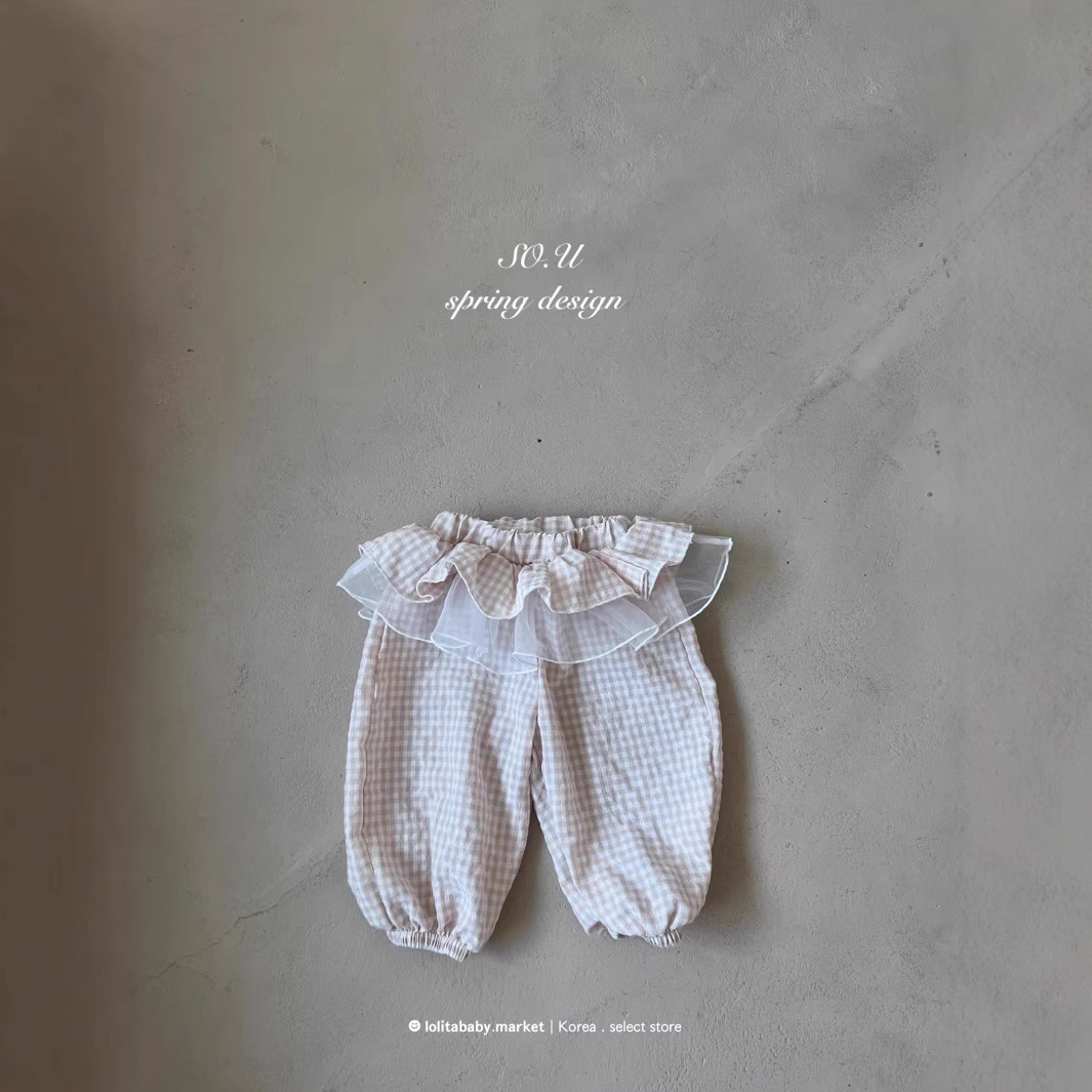 한국 아동복 새로운 스타일 25 가을 소녀와 유아 달콤한 레이스 격자 무늬 메쉬 레깅스와 퀼로트