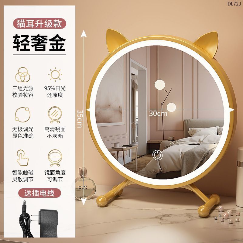 가벼운 소녀의 집 침실 드레싱 테이블 거울 학생 기숙사 데스크톱 데스크톱 거울과 스마트 led 메이크업 거울스토어 가기