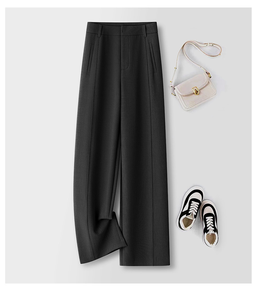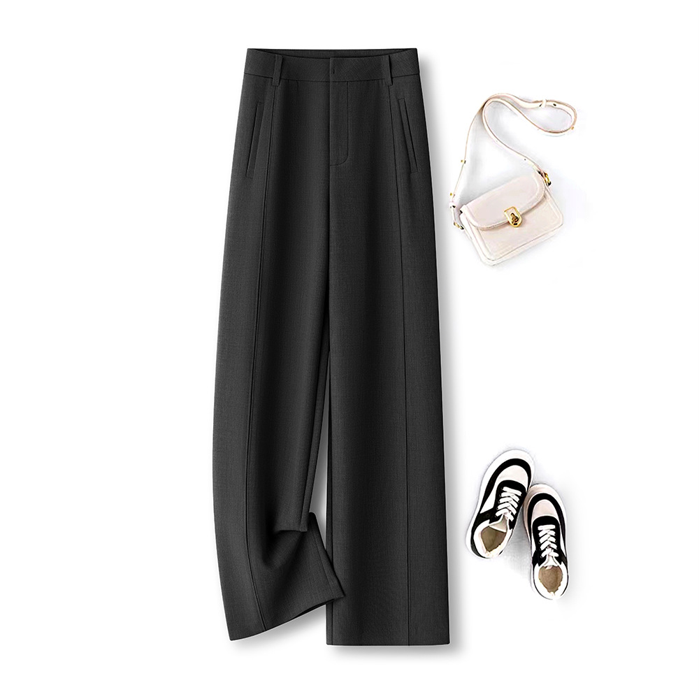 고급 회색 정장 와이드 팬츠 여성용 봄 가을 2025 신상 슬림핏 스트레이트 팬츠 드레이프감 있는 우아한 정장 바지 캐주얼 팬츠스토어 가기