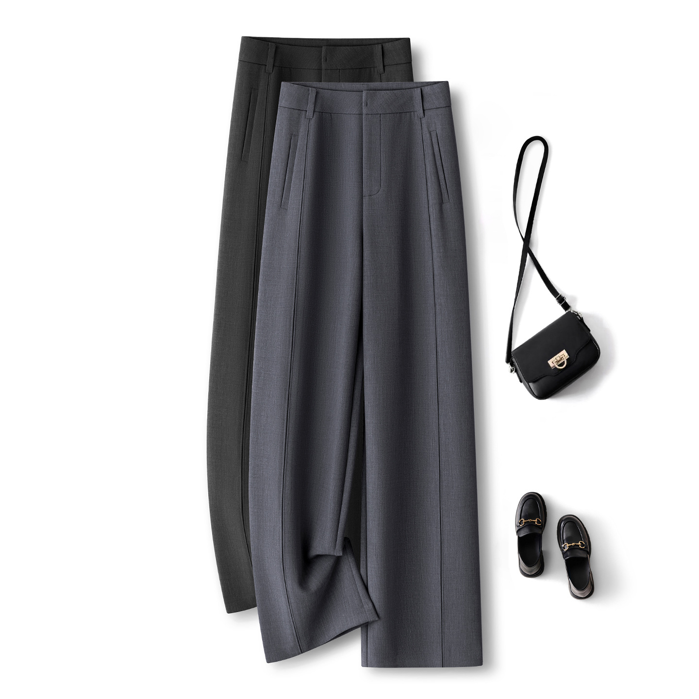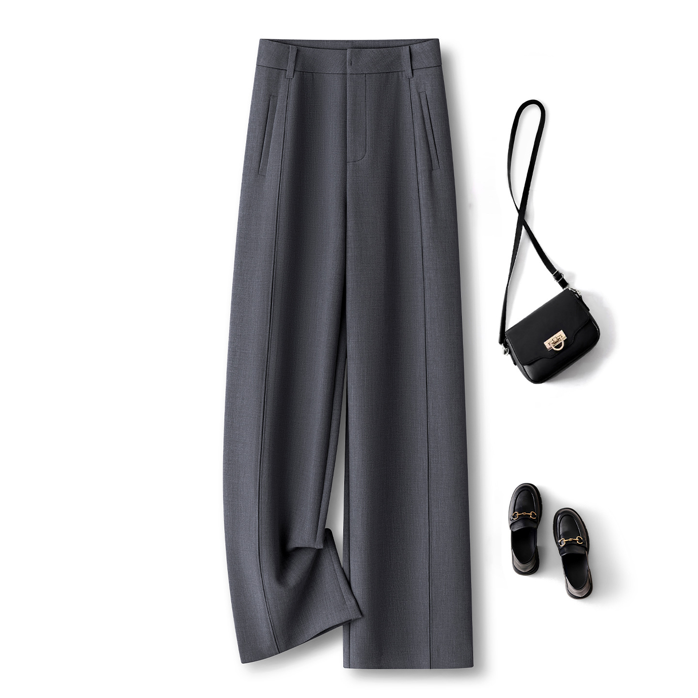 고급 회색 정장 와이드 팬츠 여성용 봄 가을 2025 신상 슬림핏 스트레이트 팬츠 드레이프감 있는 우아한 정장 바지 캐주얼 팬츠