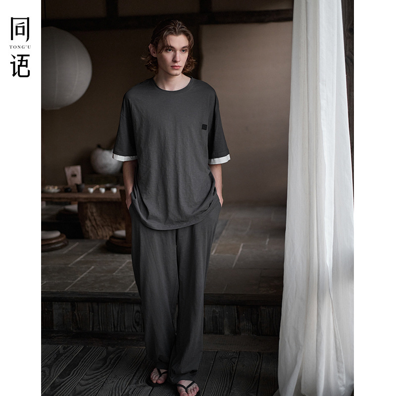 25 년 잠옷 남자 여름 부드러운 면 잠옷 짧은 소매 바지 세트 봄과 여름 홈 웨어스토어 가기