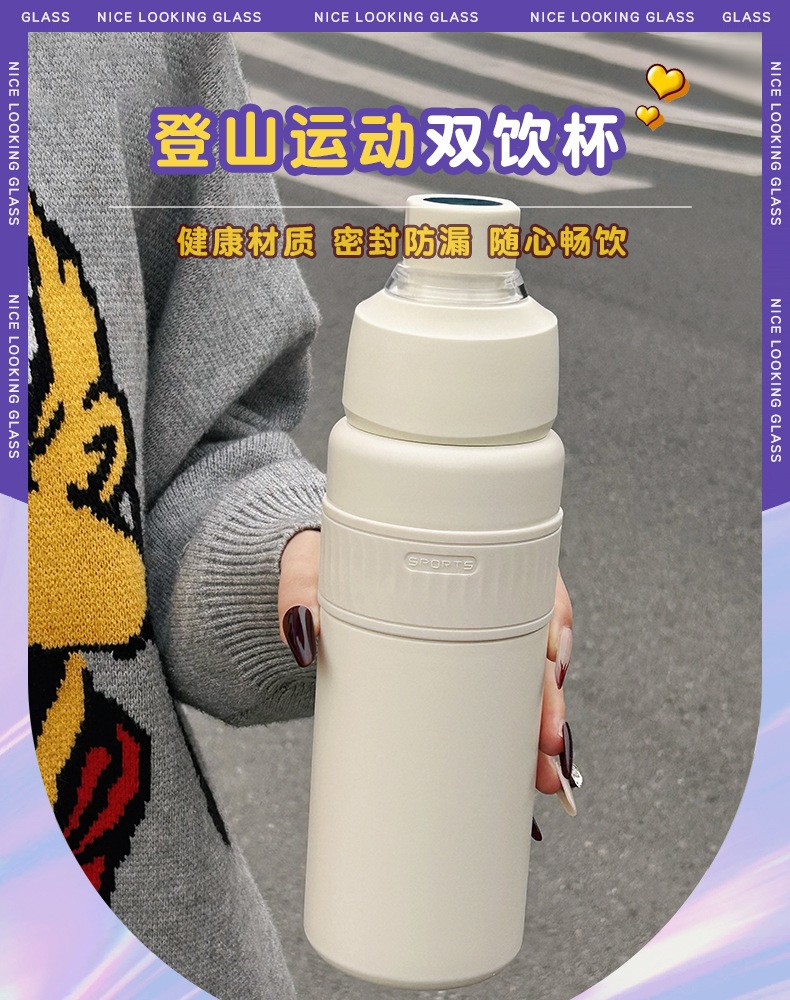 새로운 등산 더블 음료 스포츠 보온병 컵 높은 색상 값 간단한 커플 컵 창조적 인 대용량 자동차 컵스토어 가기