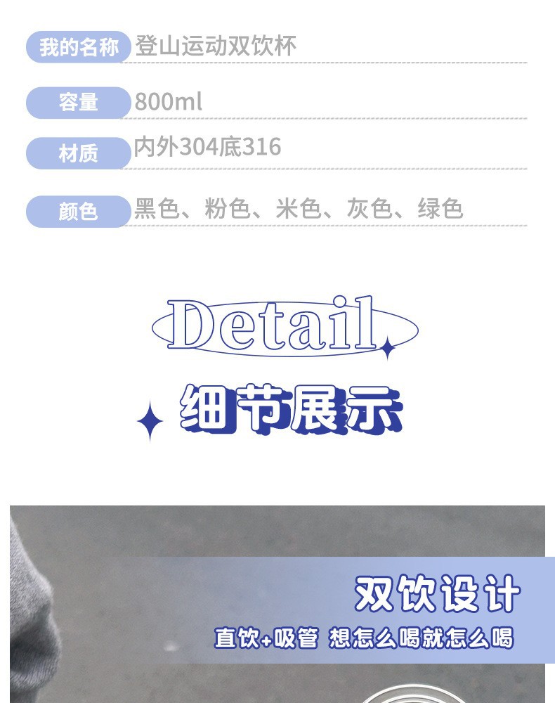 새로운 등산 더블 음료 스포츠 보온병 컵 높은 색상 값 간단한 커플 컵 창조적 인 대용량 자동차 컵