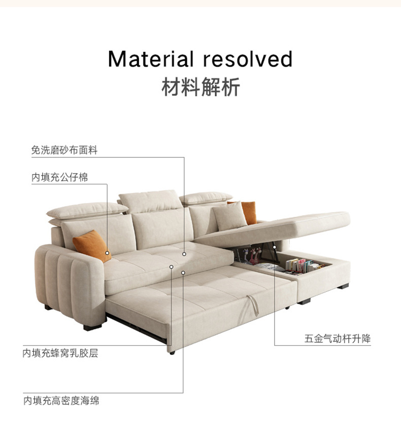 Lfn 다기능 소파 침대 Cofe 솔리드 우드 스토리지 소파 침대 접이식 푸시-풀 더블 작은 아파트 기술 천스토어 가기