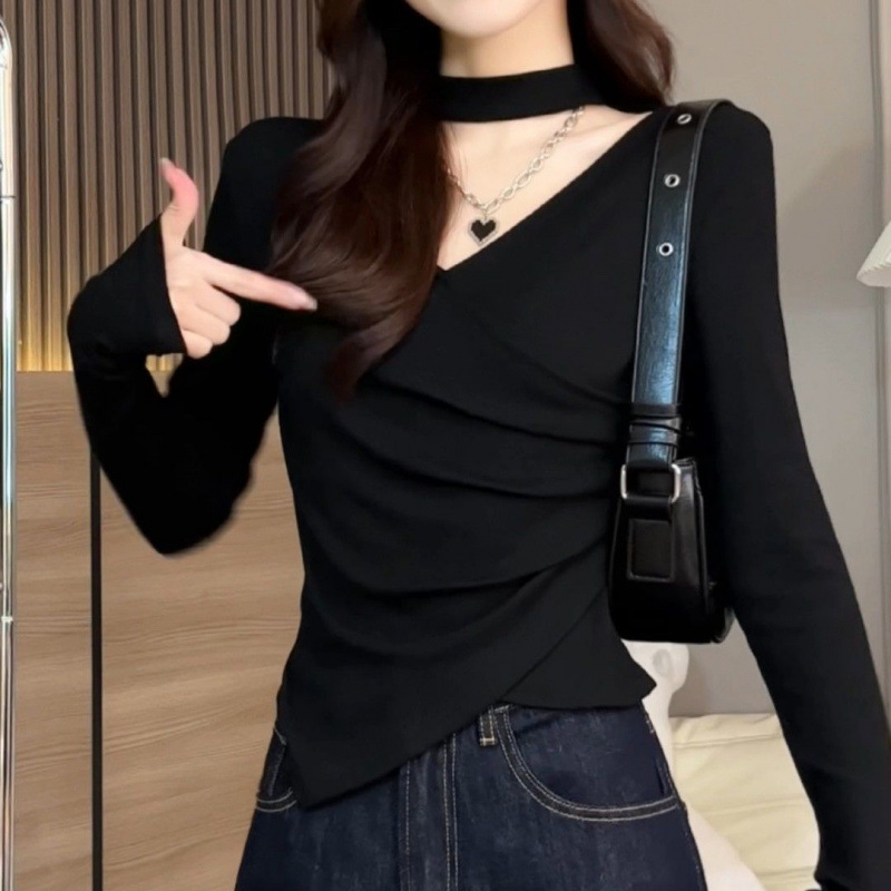 플러스 사이즈 불규칙한 유행 긴 소매 셔츠베이스 셔츠 여성의 봄과 가을 슬림-적합 슬리밍 육체 커버 디자인 감각 외부 착용 탑스토어 가기