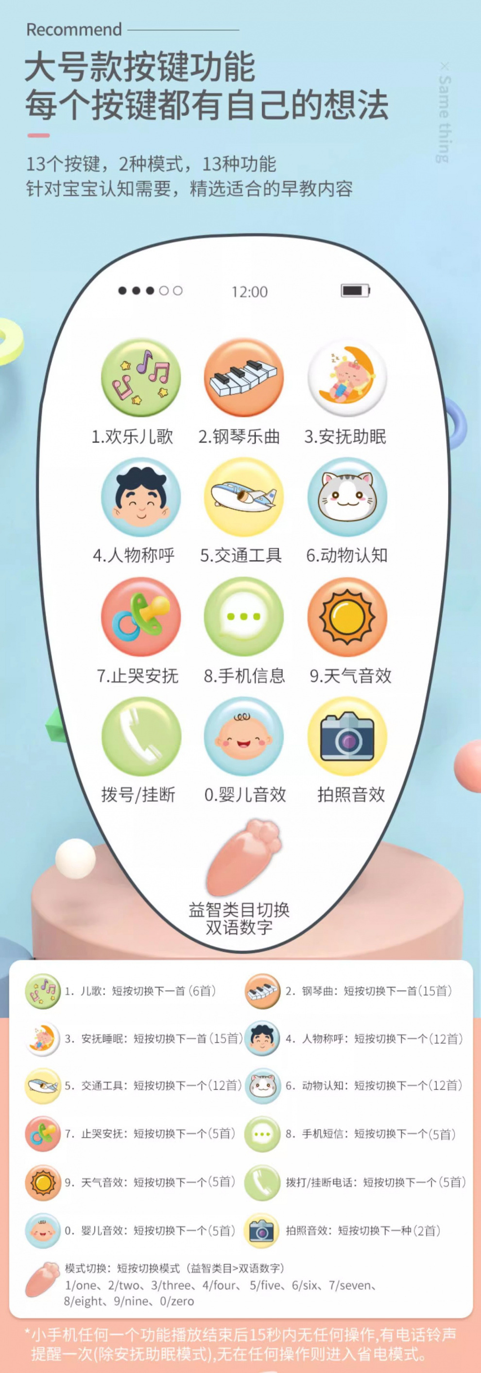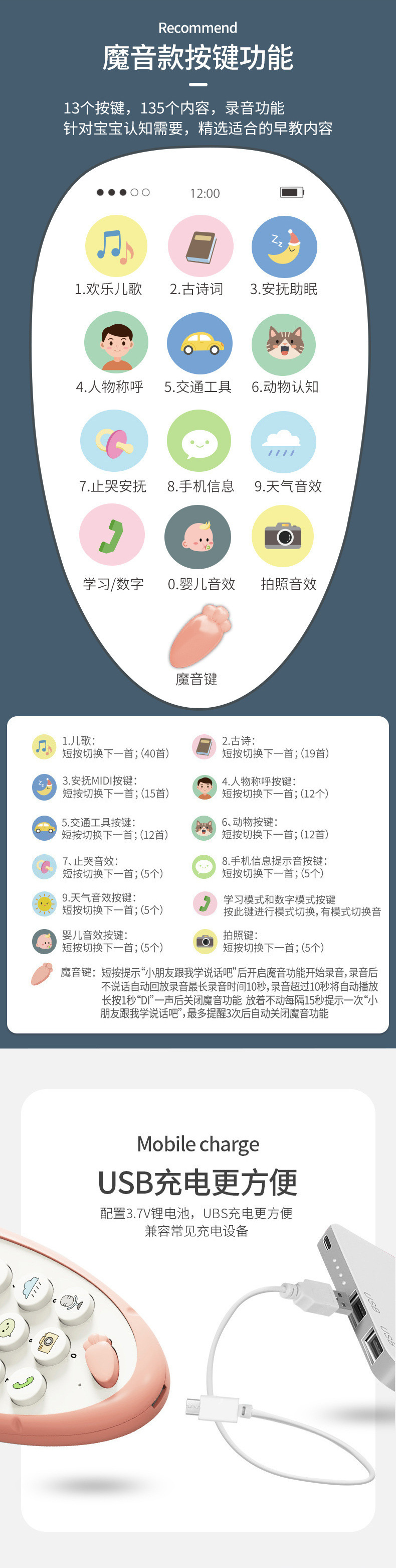 아기 스마트 조기 교육 어린이 만화 무 시뮬레이션 휴대 전화 물린 음악 이야기 전화 교육 장난감스토어 가기