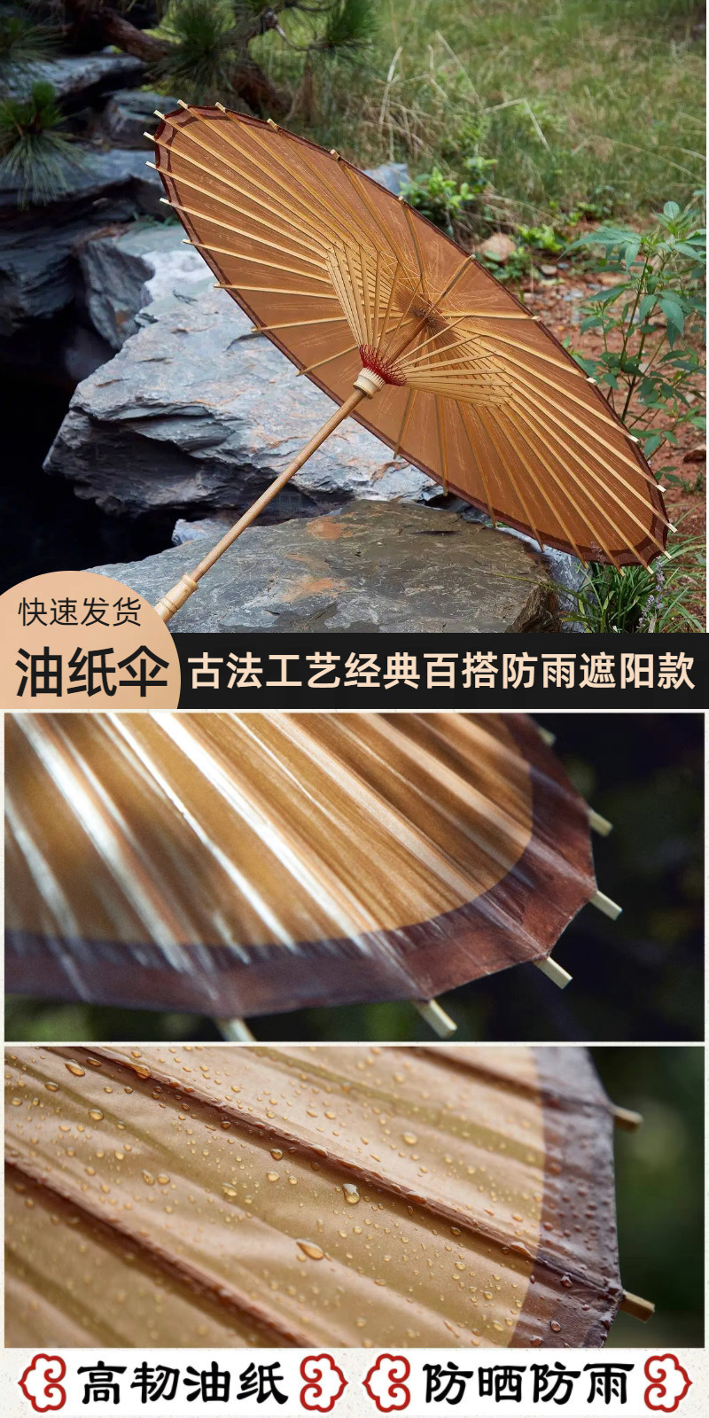 • 브라운 [동유향이 나는 방수, 차양 기름종이우산]