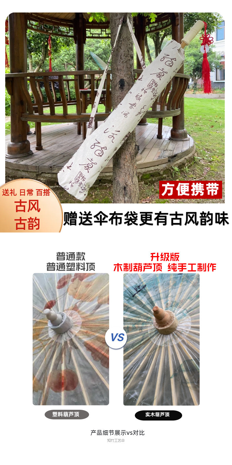 • 84cm 단단한 나무 조롱박 상단 + 중국 매듭 + 천 우산 가방