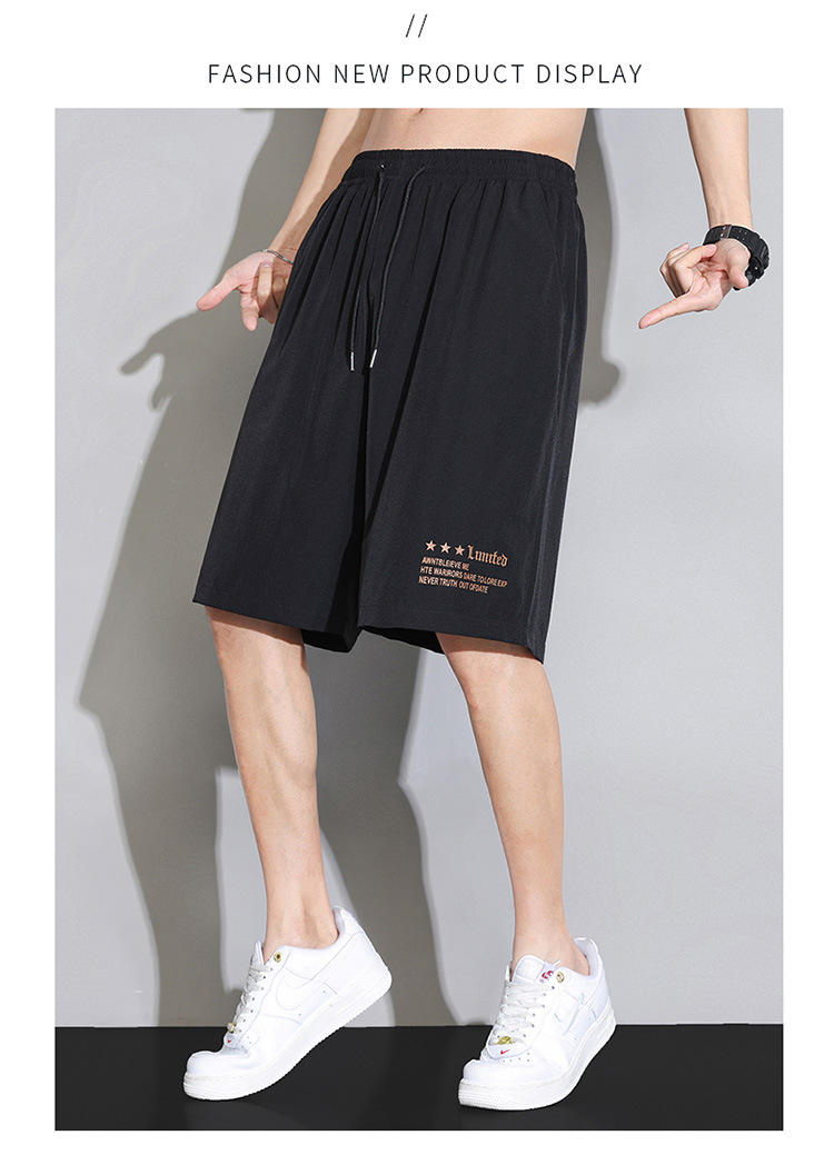 플러스 사이즈 아이스 실크 반바지 남자 여름 얇은 청소년 느슨한 스포츠 농구 야외 달리기 5 점 캐주얼 바지