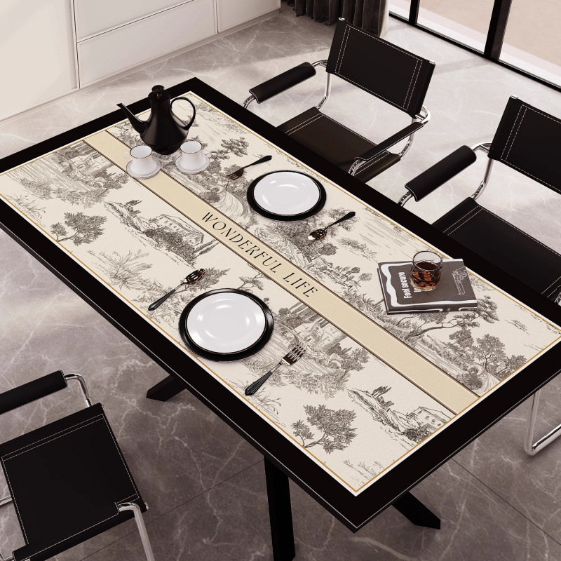 가벼운 고급 식탁 매트 방수 오일 방지 내열이없는 세탁 용 테이블 가죽 열 절연 직사각형 커피 테이블 테이블 매트