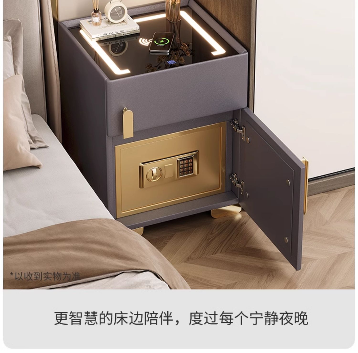 智能床头柜保险箱一体轻奢高级感家用卧室2024新款多功能保险柜小