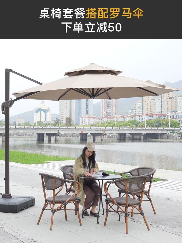 야외 테이블과 의자 우산 조합 안뜰 야외 정원 테이블과 의자 3 피스 세트 가정용 야외 레저 발코니 접이식 테이블스토어 가기