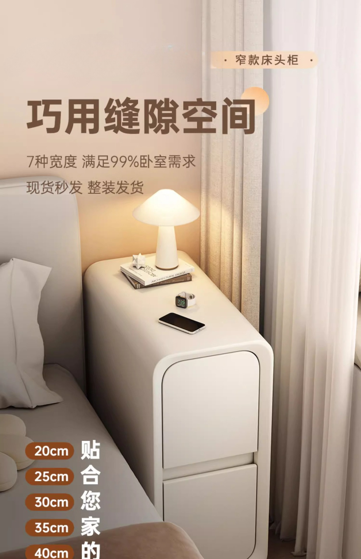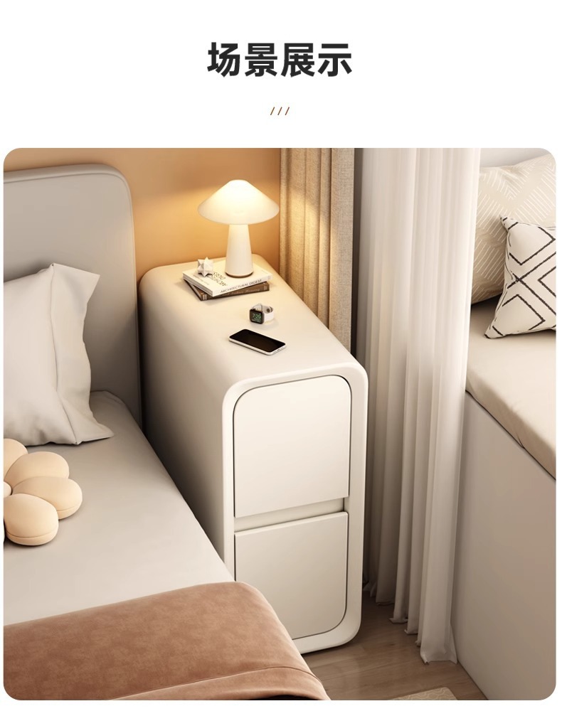 울트라 좁은 침대 옆 테이블 간단한 현대 침실 슬릿 단단한 나무 좁은 캐비닛 미니 작은 침대 옆 저장 랙 간단한 가벼운 럭셔리