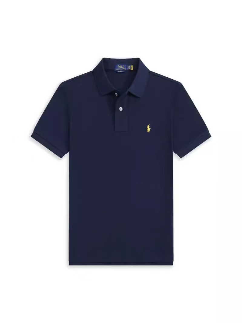• 옐로우 라벨이 있는 네이비 블루 폴로 셔츠