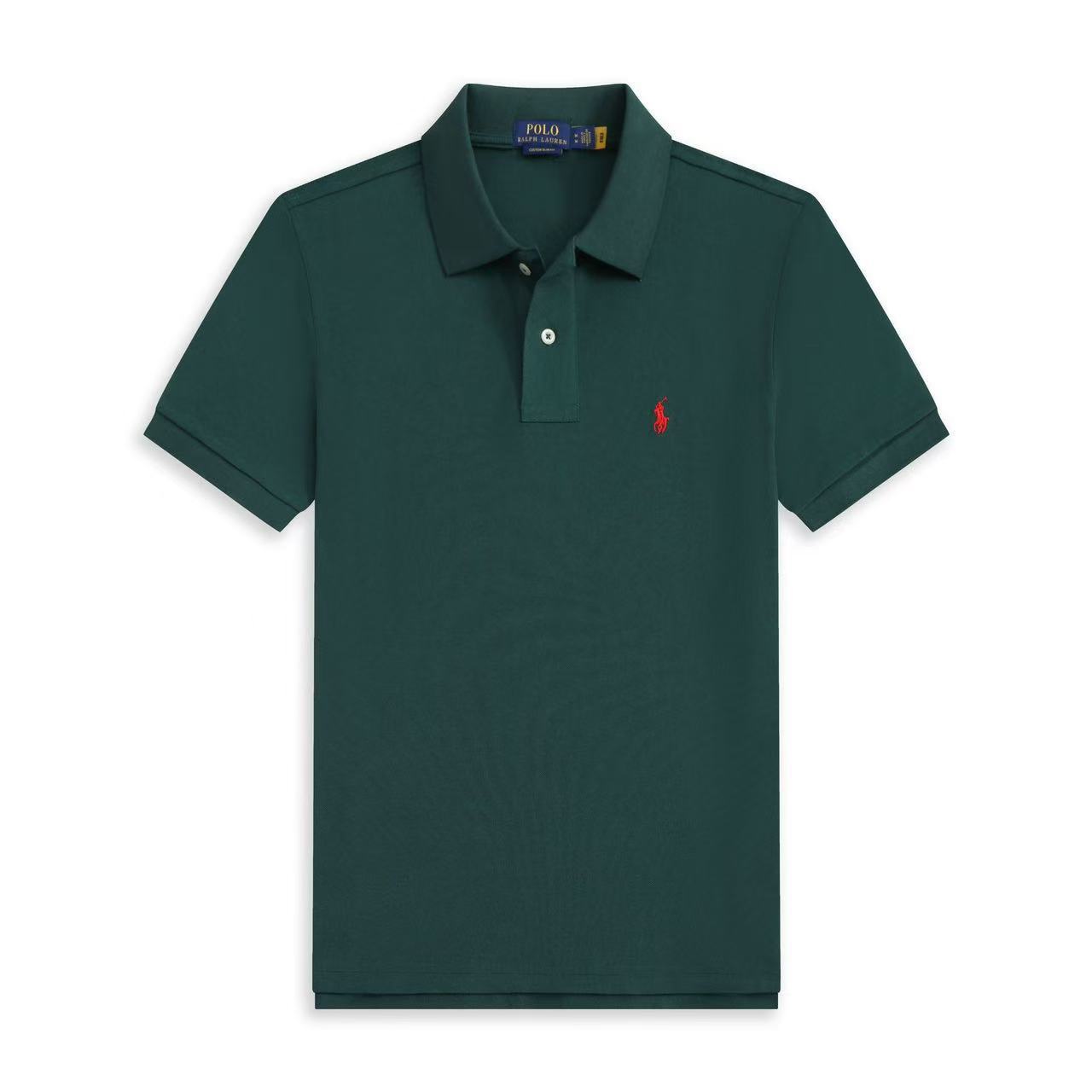 • 레드 라벨이 있는 다크 그린 폴로 셔츠