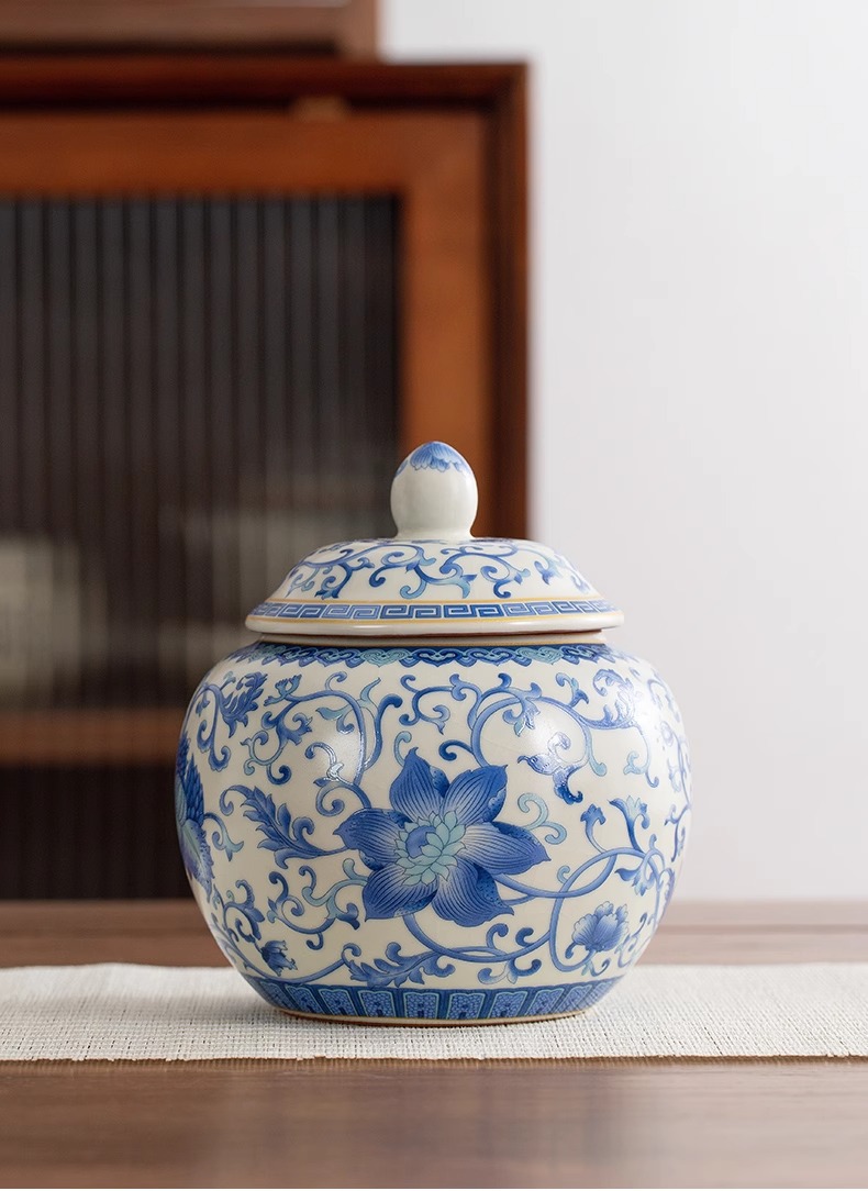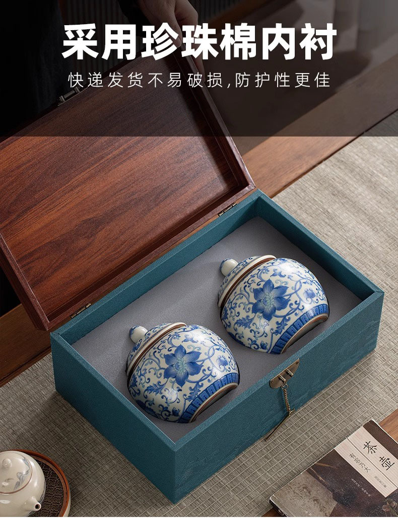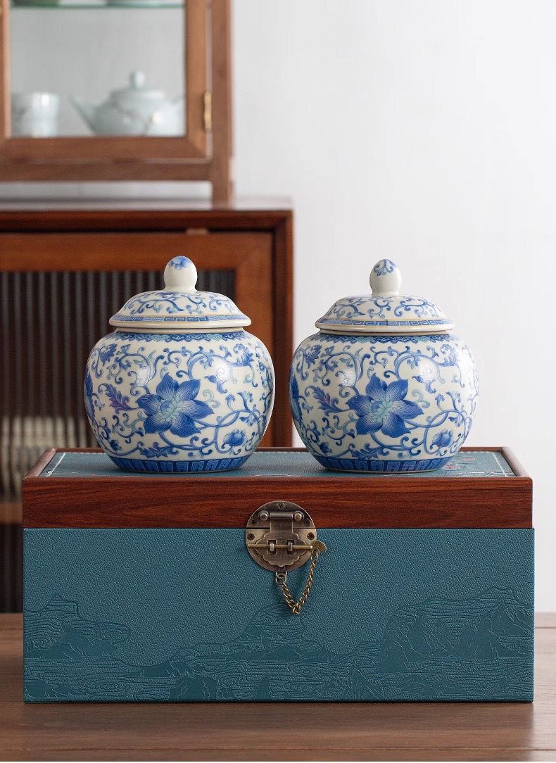 중국 스타일의 파란색과 꽃 차 캔 선물 상자 빈 상자 포장 상자 빈 선물 상자 빈티지 차 캔스토어 가기