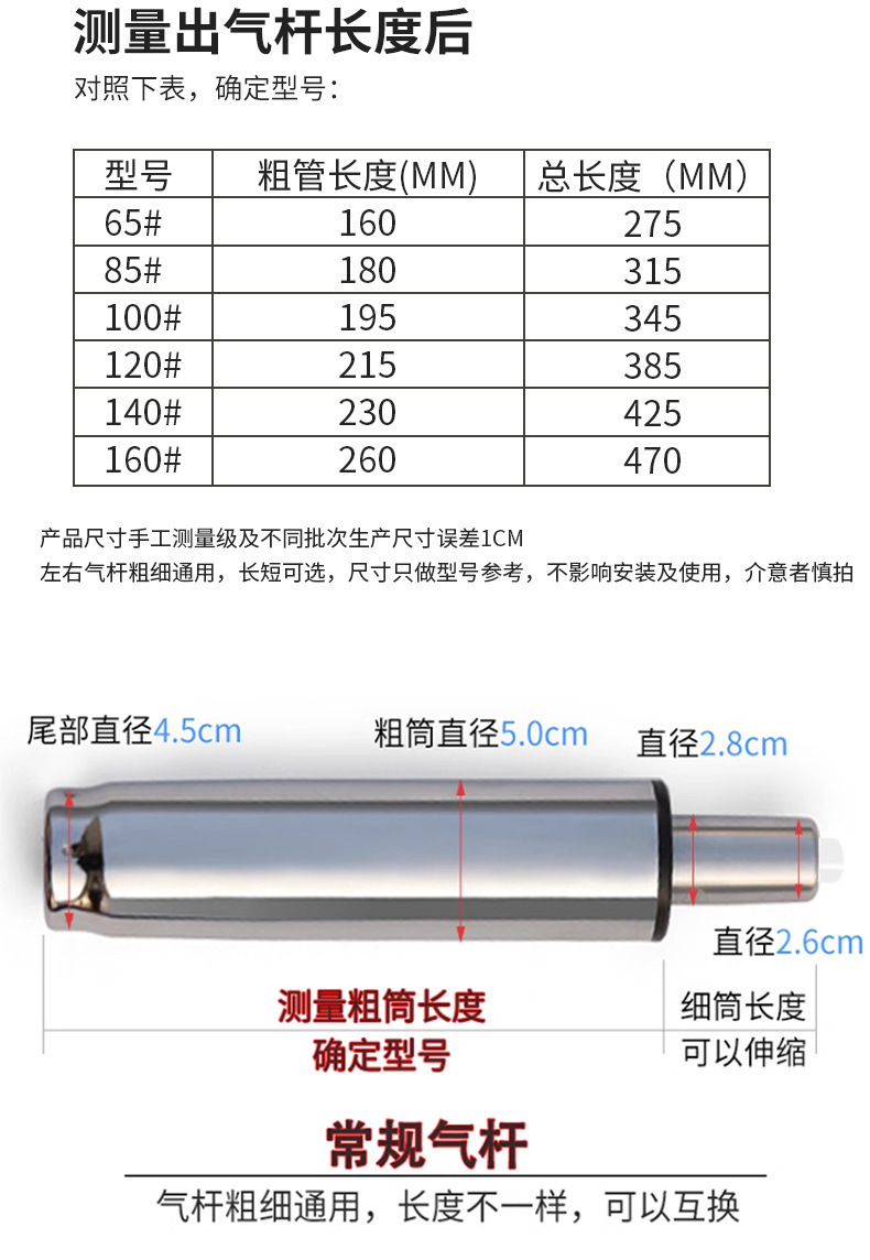 4 단계 방폭 에어로드 사무실 의자 조절 식 리프트로드 컴퓨터 의자 유압 에어로드 실린더 회전 의자 액세서리 막대스토어 가기