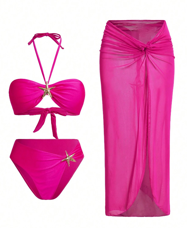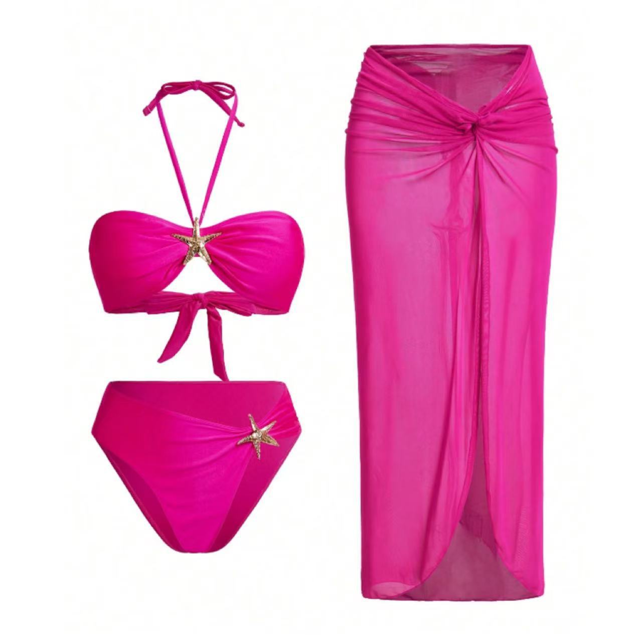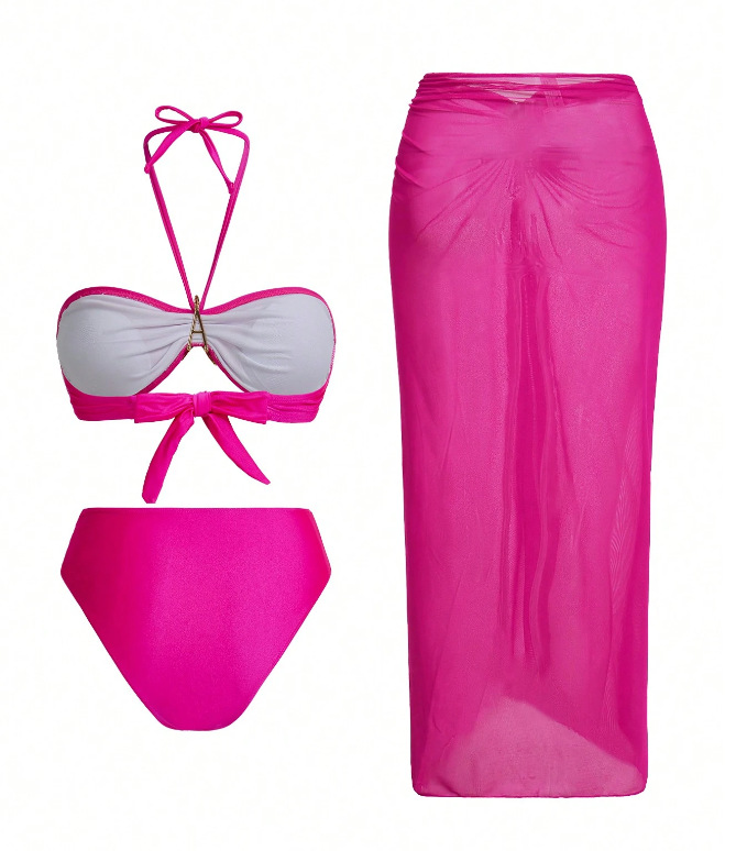 2025 유럽과 미국의 국경 간 비키니 3 피스 섹시 넥 비키니 스플릿 여성 수영복 비치 스커트 수영복스토어 가기
