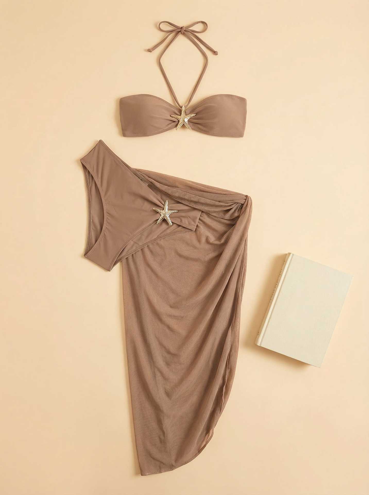 2025 유럽과 미국의 국경 간 비키니 3 피스 섹시 넥 비키니 스플릿 여성 수영복 비치 스커트 수영복