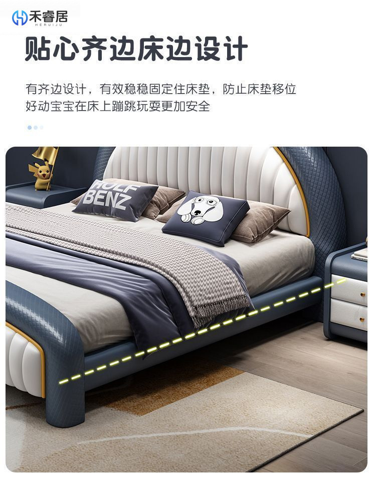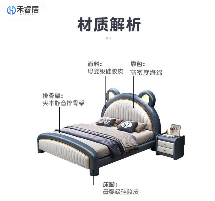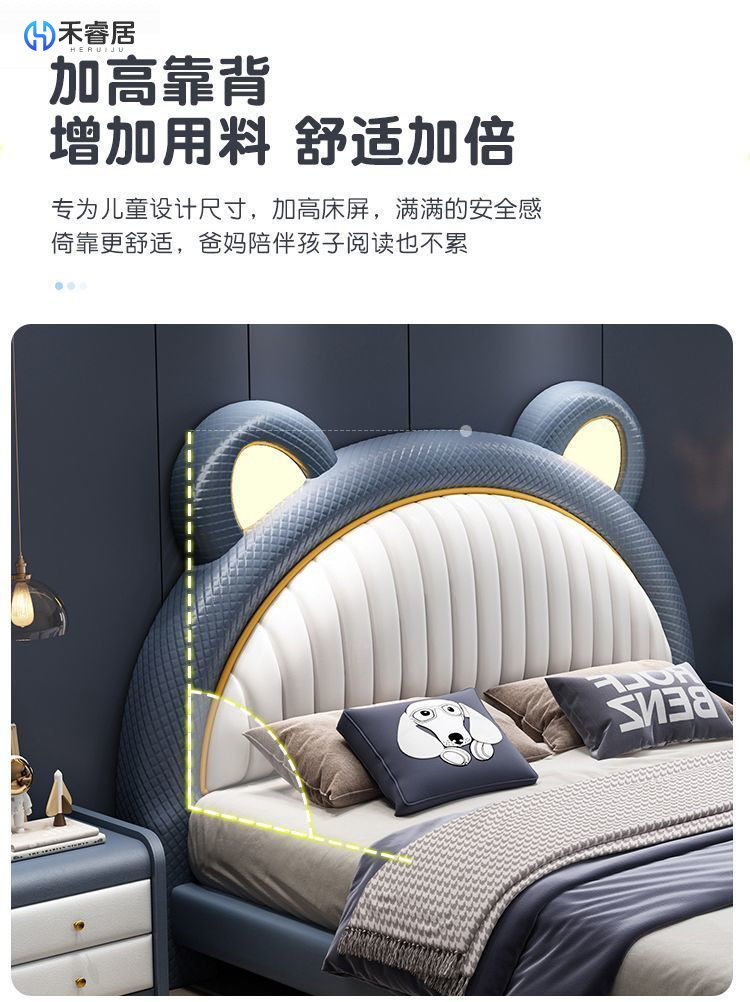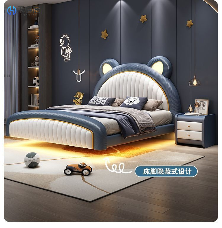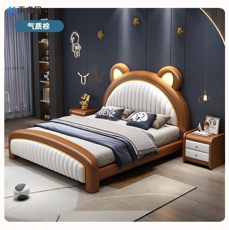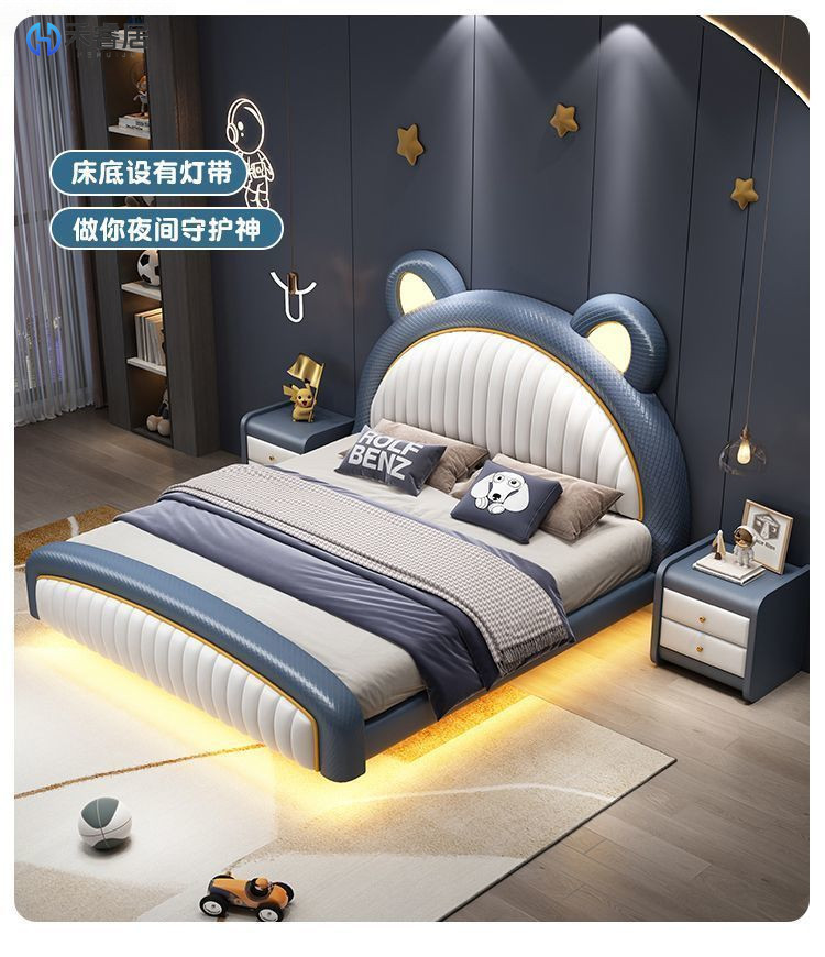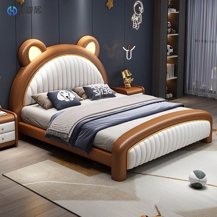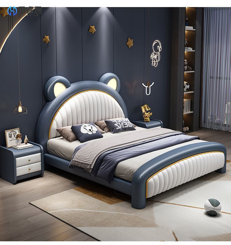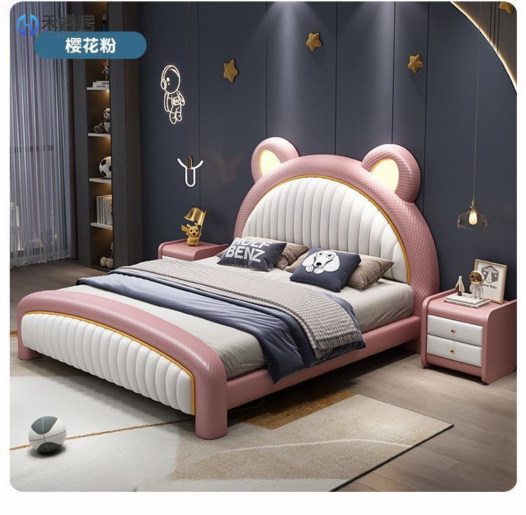 새로운 만화 어린이 침대 소년 침대 더블 가죽 침대 학생 침대 작은 아파트 소녀 침대 싱글 침대 침실 가죽 침대