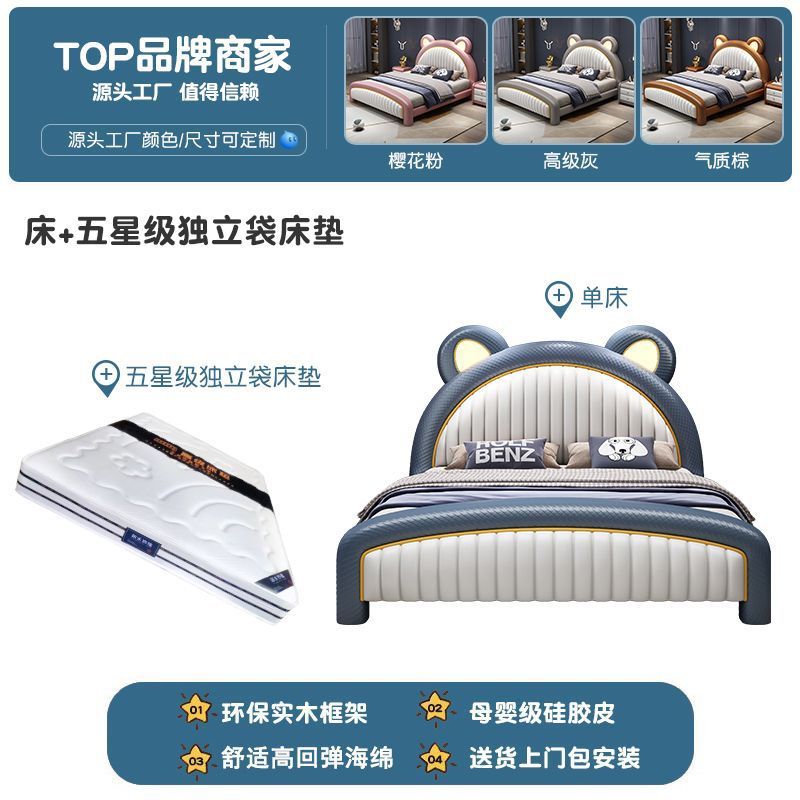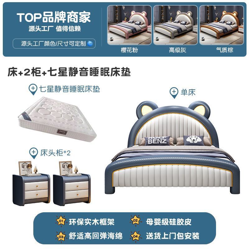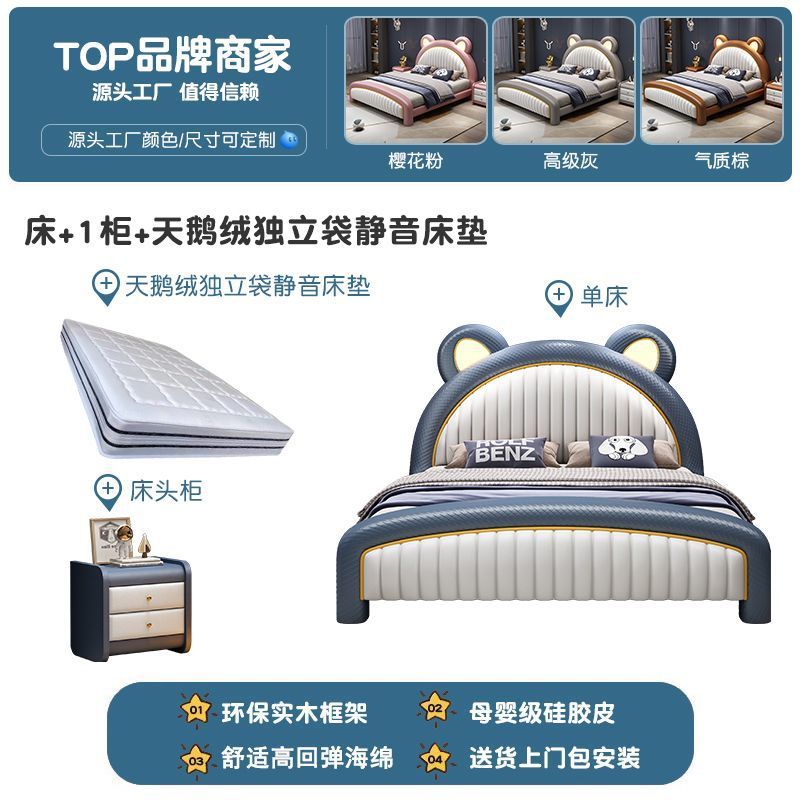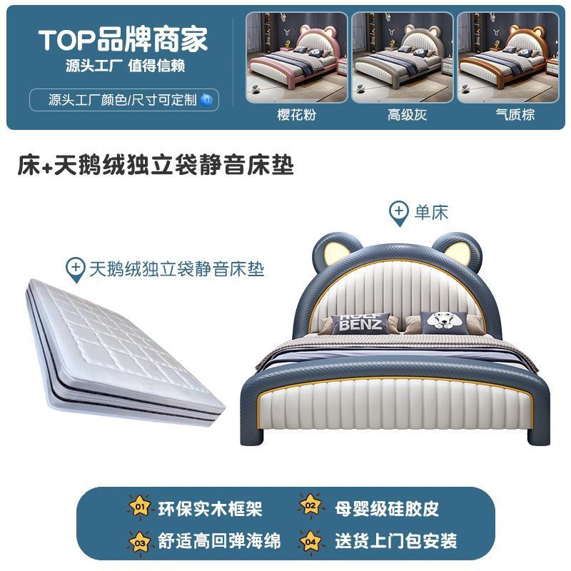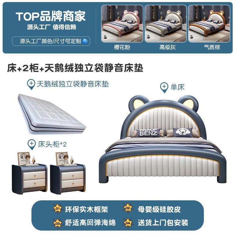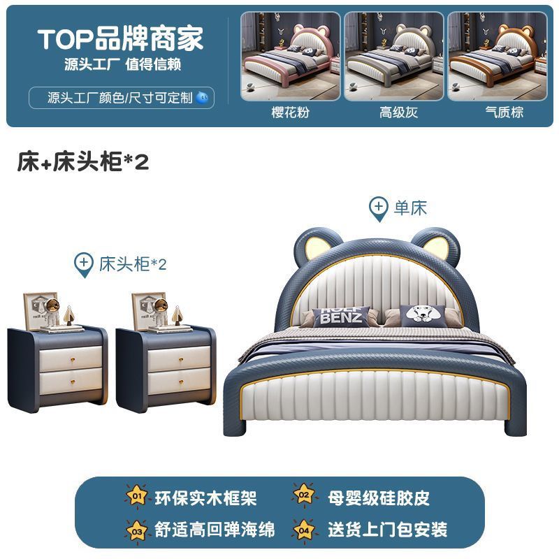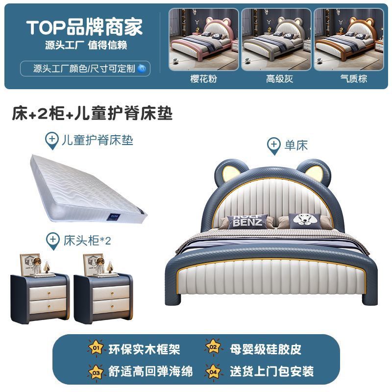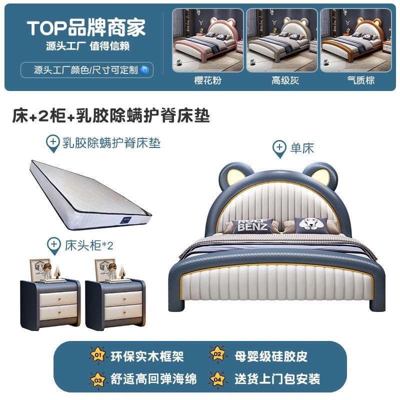 새로운 만화 어린이 침대 소년 침대 더블 가죽 침대 학생 침대 작은 아파트 소녀 침대 싱글 침대 침실 가죽 침대스토어 가기