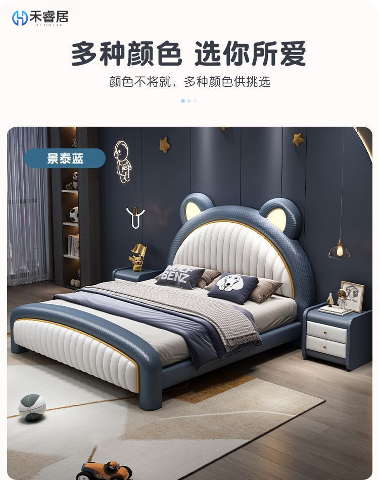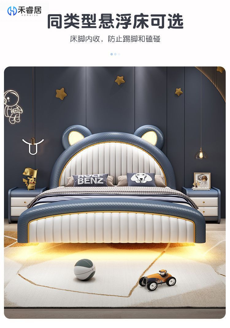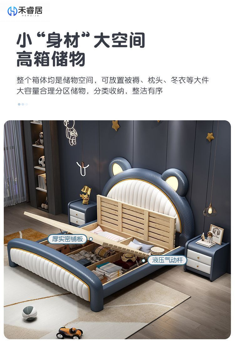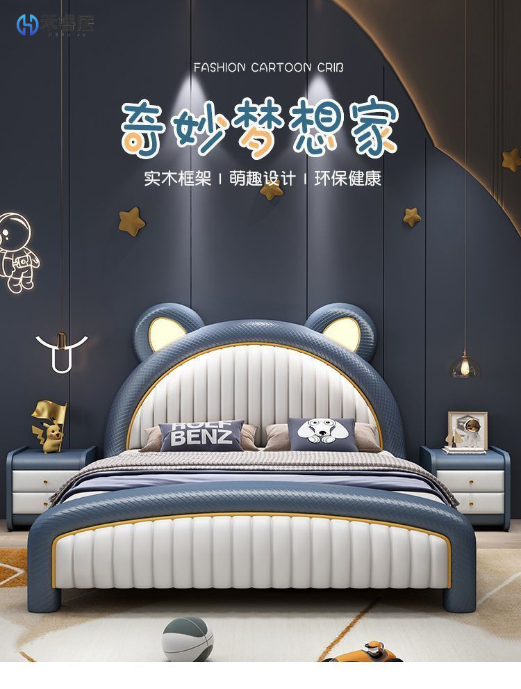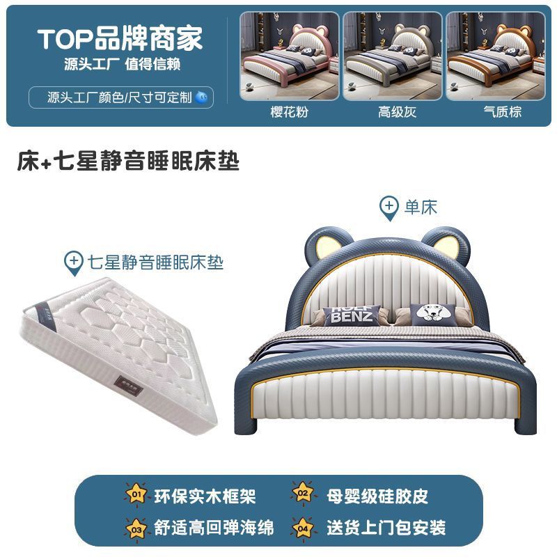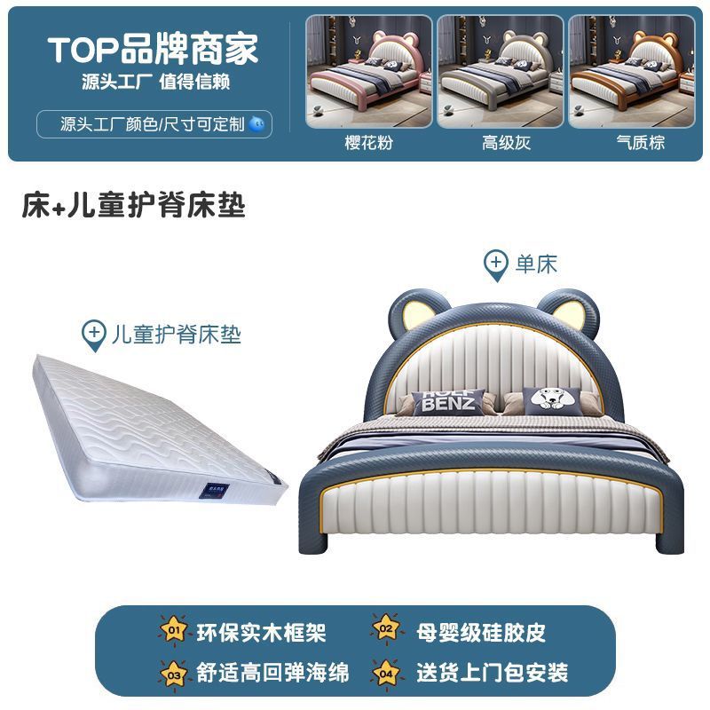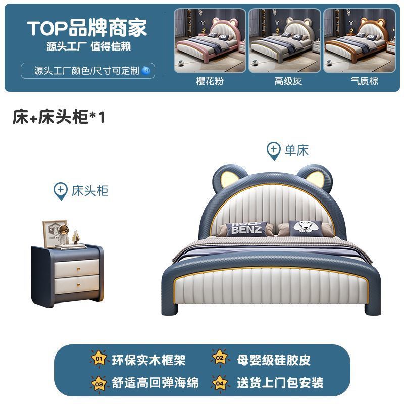새로운 만화 어린이 침대 소년 침대 더블 가죽 침대 학생 침대 작은 아파트 소녀 침대 싱글 침대 침실 가죽 침대스토어 가기